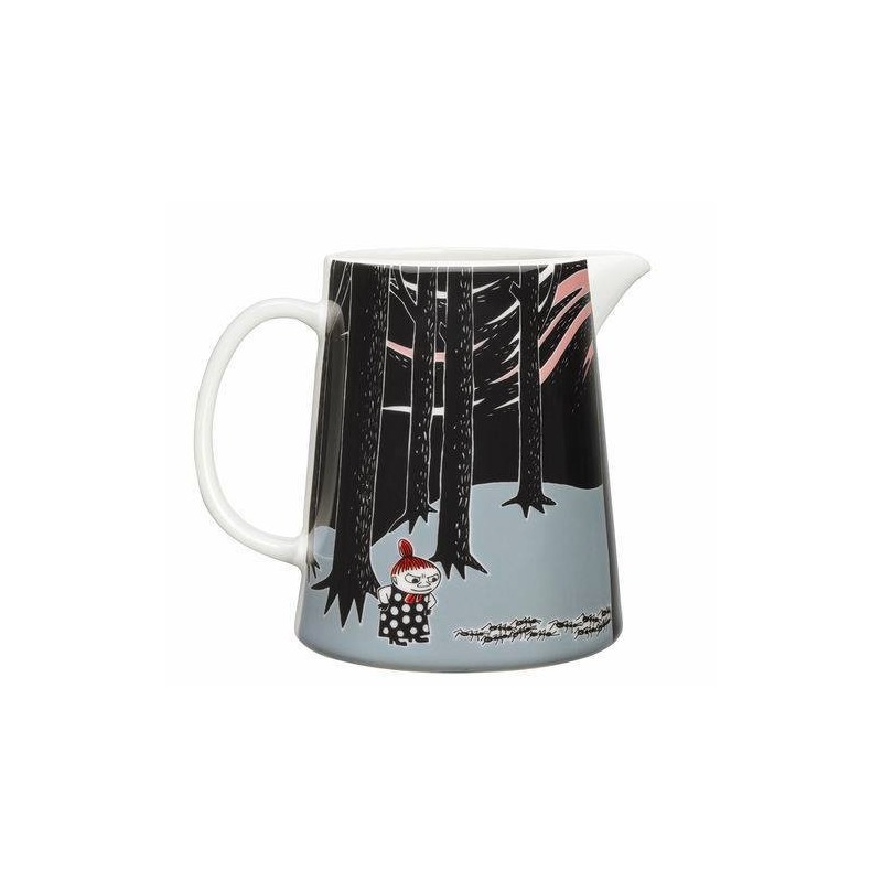 Dzbanek do soków, mleka czy gorącej herbaty z najwyższej jakości porcelany Arabia Finlad. Kolekcja naczyń Adventure Move z motywem historii o Muminkach.Teraz pożądana przez dużych i małych miłośników. Każdy przedmiot opowiada kolejną scenę z życia postaci. .