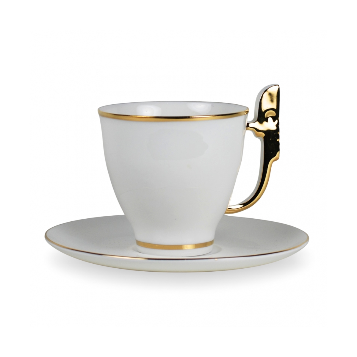 Elegancka filiżanka ze spodkiem Wenecka to połączenie klasycznej porcelany z wyrafinowanym detalem inspirowanym romantyczną Wenecją. Jej najbardziej charakterystycznym elementem jest złote, rzeźbiarskie ucho nawiązujące do il ferro di prua – ozdobnego metalowego okucia zdobiącego dziób weneckich gondoli, symbolu kunsztu, stylu i tradycji miasta.