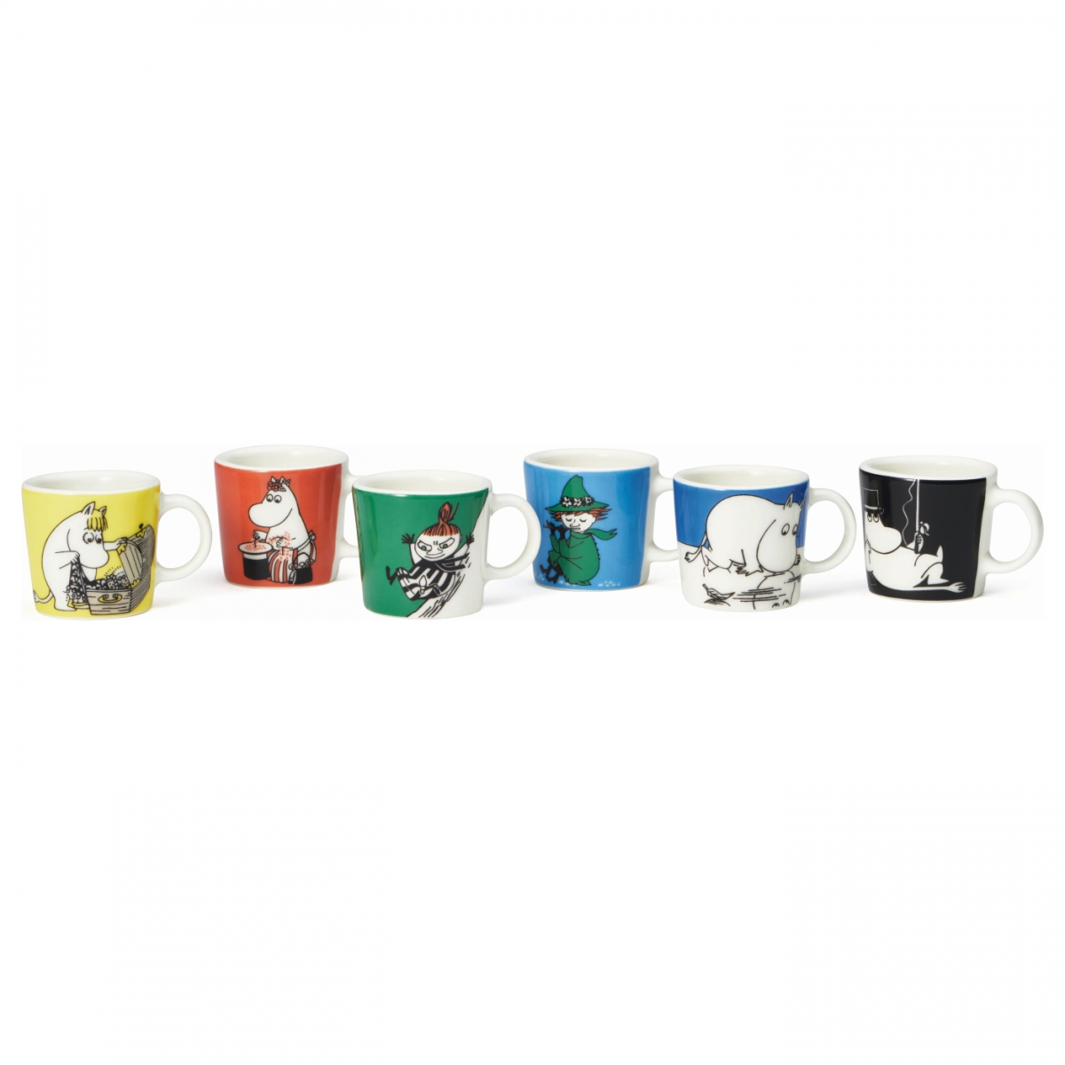 Zestaw sześciu porcelanowych kubków z kolekcji Muminki autorstwa Tove Jansson, zdobionych uroczymi, miniaturowymi ilustracjami postaci z popularnej serii. Kubki są idealne do serwowania kawy, herbaty lub innych napojów, a ich kompaktowy rozmiar i kolorowe motywy wprowadzają do codziennego rytuału porcję radości i nostalgii.