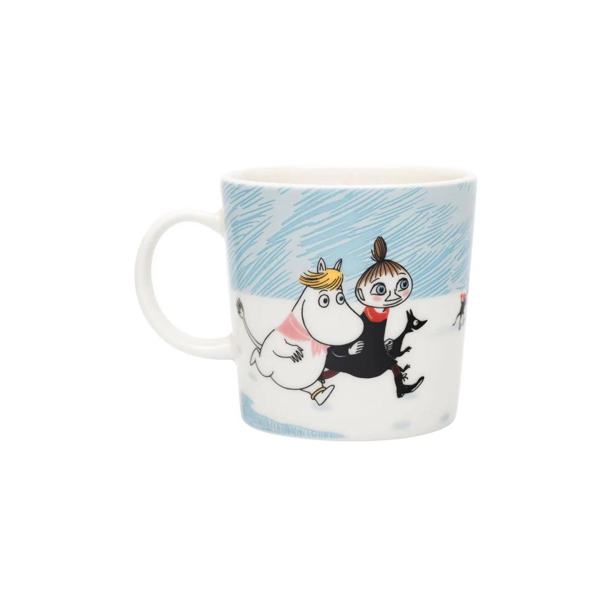 Kubek Arabia Finland Muminki „Ice Swimming” 300 ml to klasyczny porcelanowy kubek z wygodnym uchem i zimowym motywem z Doliny Muminków. Niebieska kolorystyka świetnie wygląda na stole i od razu robi klimat na ciepłą herbatę, kakao albo poranną kawę.