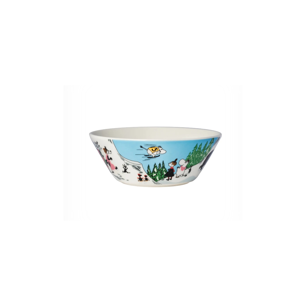 Porcelanowa miseczka ozdobiona ilustracją inspirowaną zimowymi przygodami Muminków z komiksu „Niebezpieczna zima” autorstwa Tove Jansson. Idealna dla miłośników klasycznych historii z Doliny Muminków – świetnie sprawdzi się na co dzień i jako kolekcjonerski dodatek.