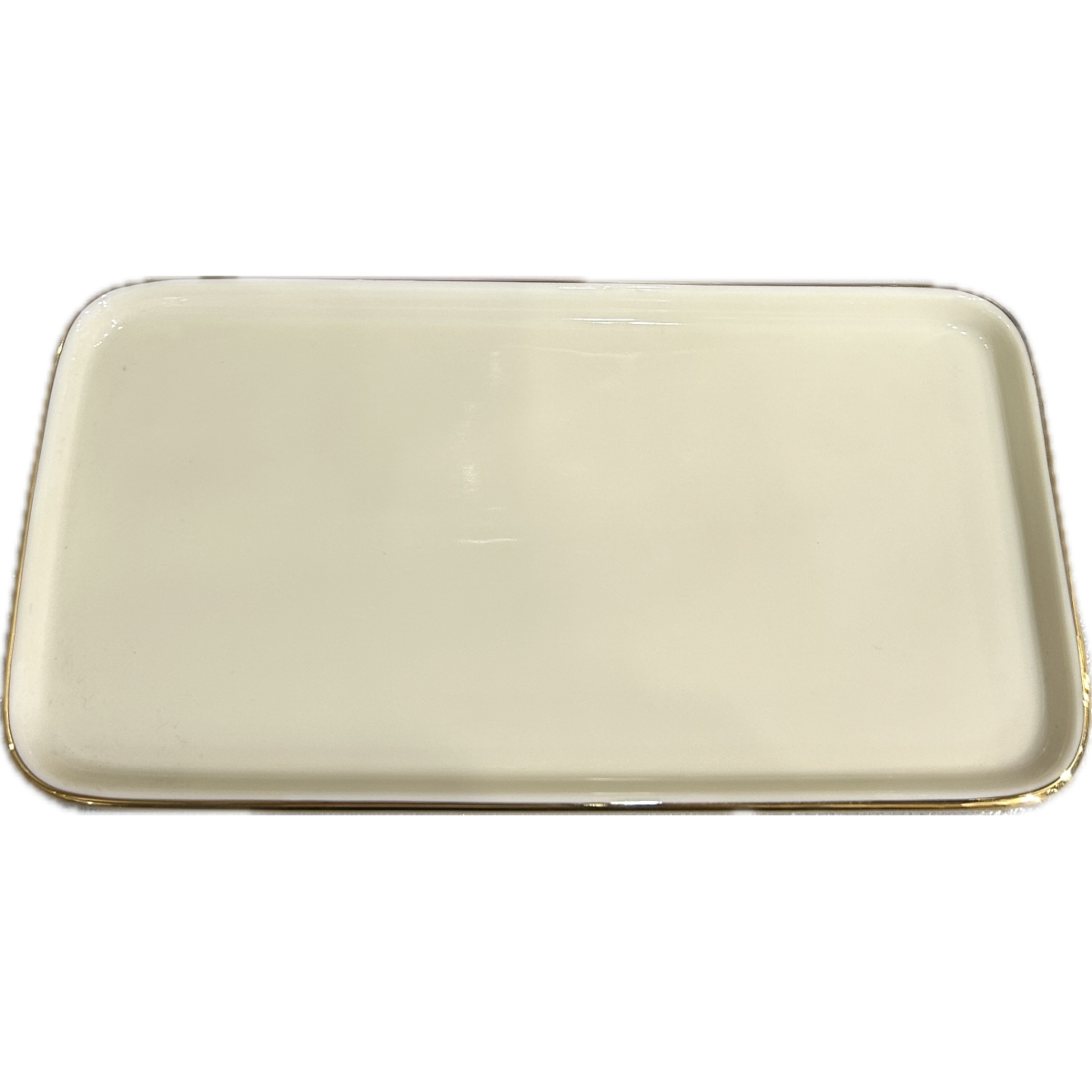 Maselnica prostokątna w z serwisu Furstin Goldring, wykonanego z porcelany w kolorze kości słoniowej w Manufakturze Furstneberg. Delikatny złoty pasek na obrzeżach dodaje tej ponadczasowej, prostej w formie porcelanie, elegancji i subtelnej wytworności.