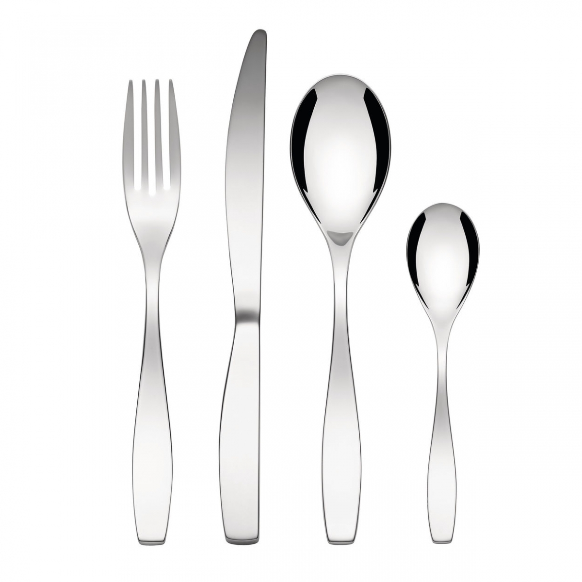 Zestaw sztućców wykonany z wysokiej jakości stali nierdzewnej 18/10, polerowanej na wysoki połysk. W skład zestawu wchodzą: