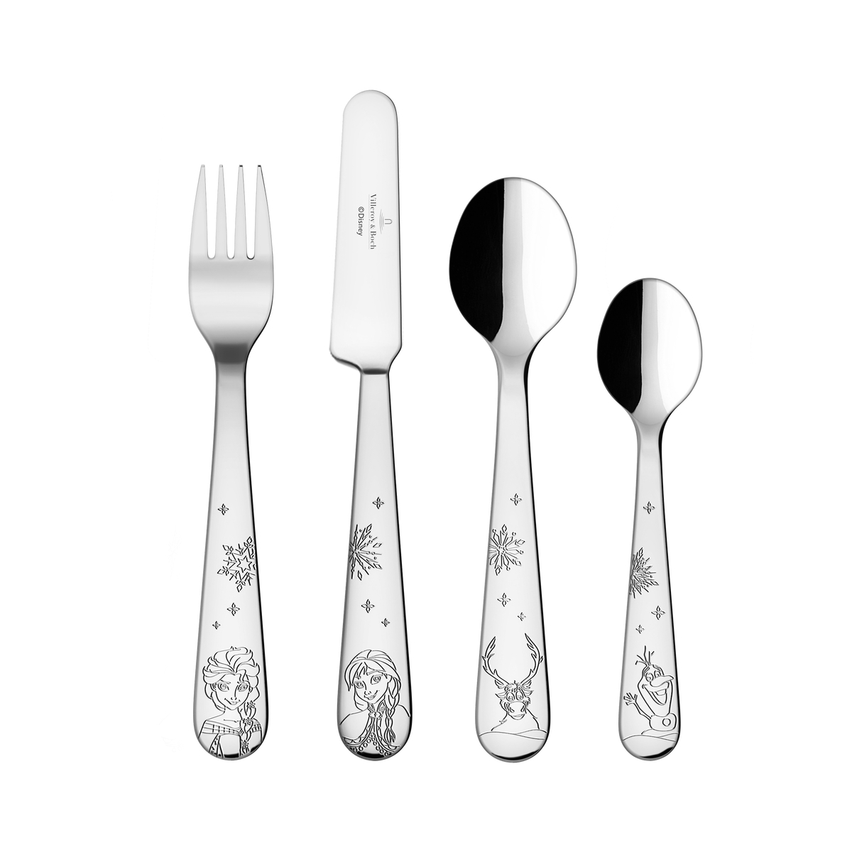Villeroy & Boch Disney Frozen - sztućce dla dzieci ze stali nierdzewnej to wyjątkowy zestaw, który wprowadza do codziennych posiłków odrobinę zimowej magii. Dekoracja z bohaterami Disney Frozen oraz motywem płatków śniegu sprawia, że każdy posiłek staje się dla dziecka jeszcze przyjemniejszy.