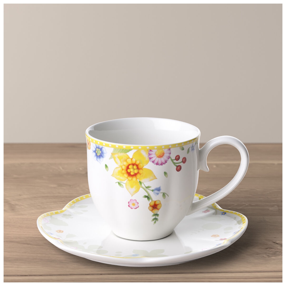 Filiżanka do kawy ze spodkiem z motywem łąki z kolekcji Spring Awakening od Villeroy & Boch. Pasuje do wielkanocnego śniadania lub brunchu w przytulnym, rodzinnym gronie. Ciesz się Wielkanocą z ukochanymi osobami.