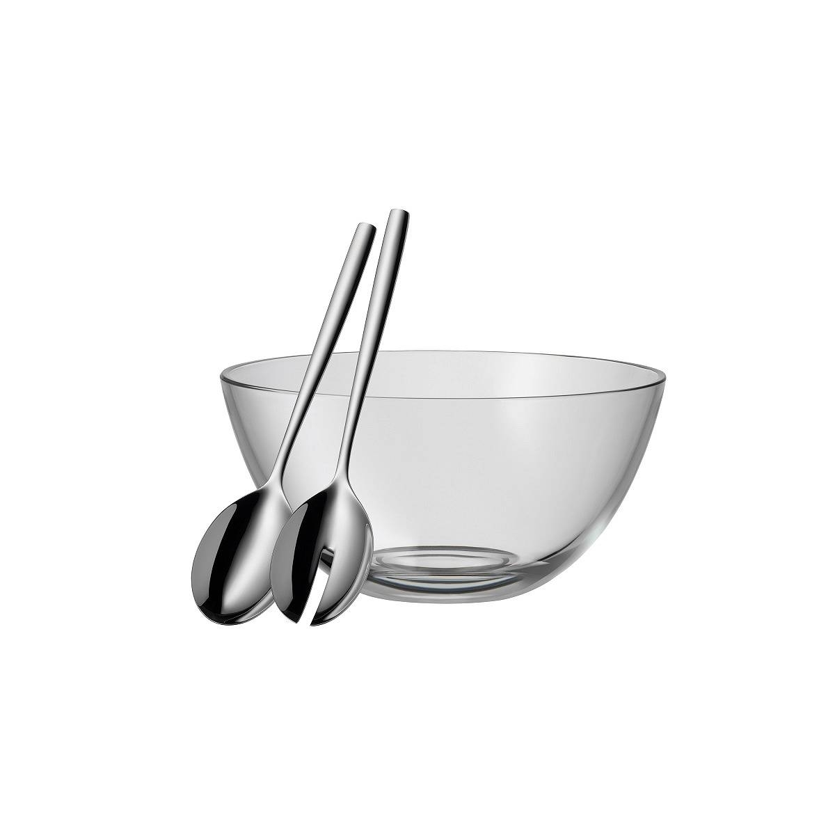 Szklana salaterka z zestawem sztućców z kolekcji Taverno marki WMF. Komplet sałatkowy ułatwia przygotowanie i podawanie sałatek do codziennych posiłków, na przyjęcia lub do posiłków na świeżym powietrzu. Wykonana z wysokiej jakości szkła, stylowo prezentuje się na każdym stole i z pewnością dopełni każdą aranżację na naszym stole. W zestawie znajdują się sztućce do sałatek.