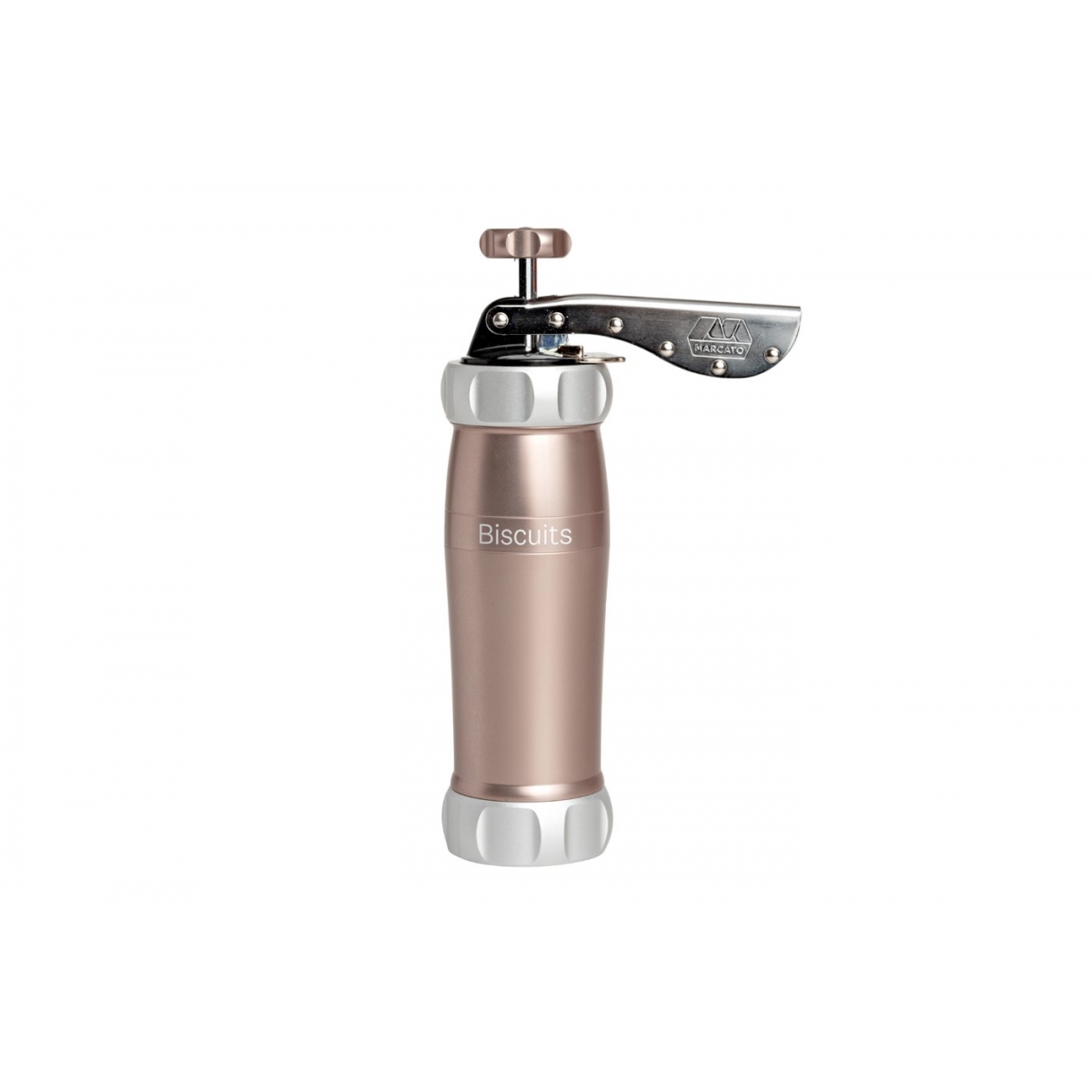 Maszynka do robienia ciastek Biscuits Design marki Marcato. Ręczna maszynka do robienia ciasteczek Biscuits Classic do tworzenia ciastek w 2 rozmiarach i 20 różnych kształtach. Elegancki, kolor pasuje do każdego stylu kuchni, a prosty, funkcjonalny design umożliwia łatwe formowanie ciastek. Jedno napełnienie ciastem wystarcza na przygotowanie 20-25 dużych lub 35-40 małych ciasteczek.