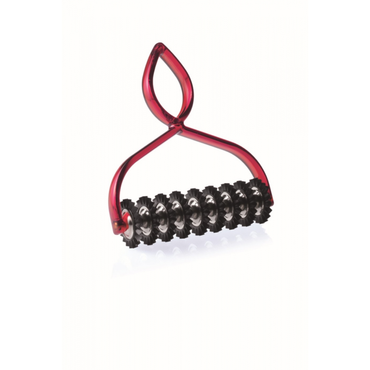 Wykrawacz do makaronu Pastabike marki Marcato - kolorowe i praktyczne narzędzie do szybkiego krojenia arkuszy makaronu w dowolne kształty. Wyposażony w 9 wymiennych kółek, pozwala łatwo dostosować szerokość cięcia i tworzyć dekoracyjne wzory zygzakowate na cieście, zarówno słodkim, jak i słonym.