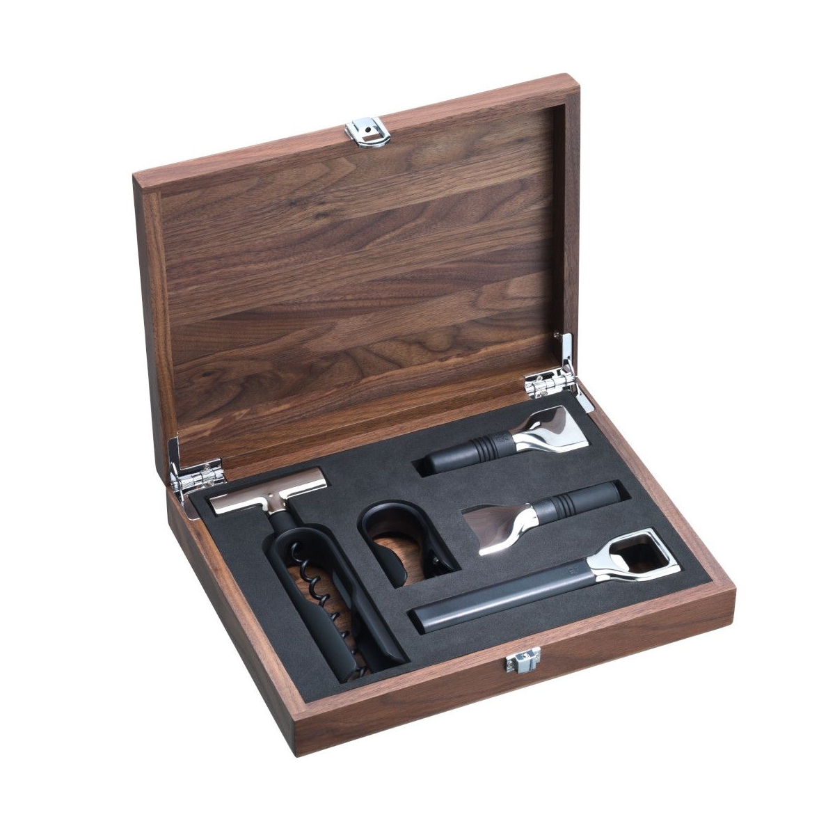 Zestaw sommelierski Baric firmy WMF to idealny wybór dla miłośników wina. Stylowa skrzynka z drewna orzechowego zawiera podstawowe akcesoria, które umilą każdą degustację: