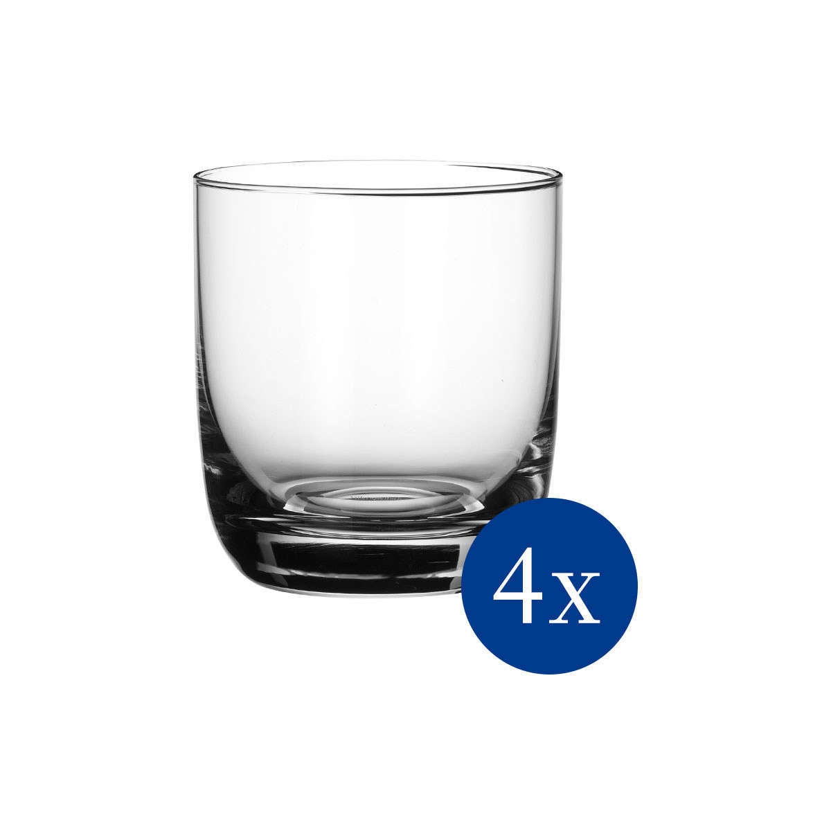 Zestaw 4 szklanek do whisky La Divina marki Villeroy & Boch to eleganckie szkło stworzone do serwowania whisky, burbona, rumu oraz koktajli na lodzie. Każda szklanka ma pojemność 360 ml i wysokość 9,4 cm, dzięki czemu idealnie leży w dłoni i pomieści zarówno klasycznego „shota”, jak i drinka z dużymi kostkami lodu.
