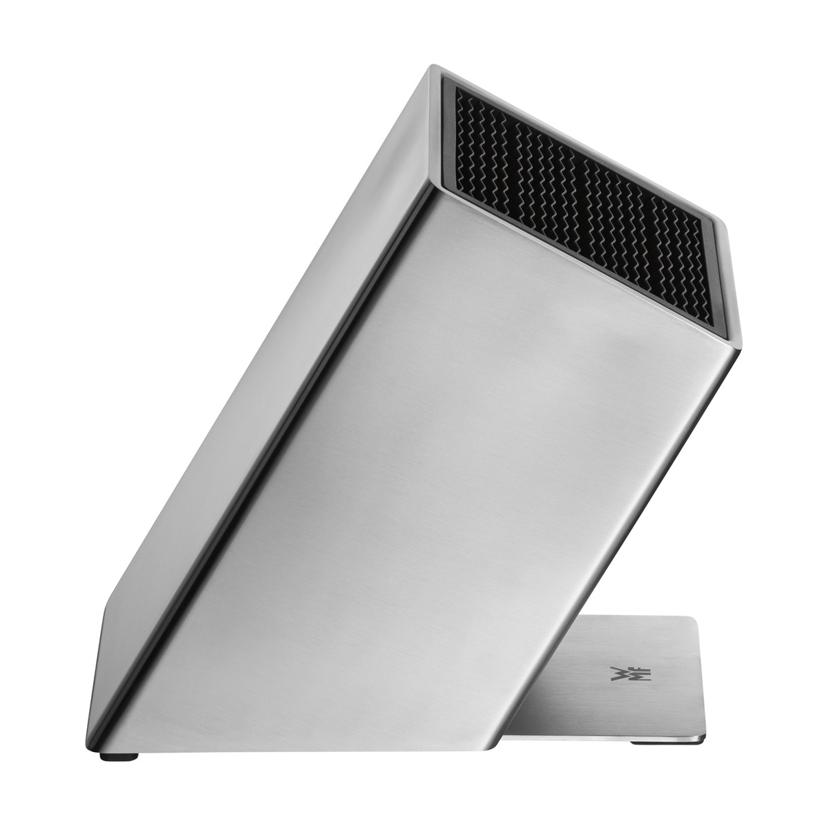 Blok do noży marki WMF do przechowywania noży w uporządkowany sposób, dzięki czemu będą zawsze pod ręką. Stojak wykonany ze stali nierdzewnej Cromargan. Połączenie matowego oraz ciemnego wykończenia nadaje produktowi ponadczasowy design, który będzie prezentować wysoką elegancję na blacie kuchennym. Technologia FlexTech zapewnia ułożenie noży w dowolnej konfiguracji, pomieści do 15 noży różnego typu, w tym również nożyczki,