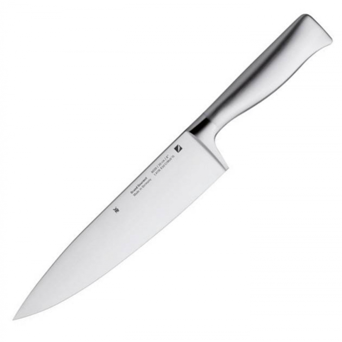 Nóż do krojenia mięsa, ryb, warzyw, owoców oraz do siekania ziół i orzechów z kolekcji Grand Gourmet marki WMF. Ostrze z kutej stali nierdzewnej jest solidne i trwałe, utrzymując długotrwałą ostrość dzięki zaawansowanej technologii. Kuta nasada między ostrzem a rękojeścią zapewnia bezpieczeństwo użytkowania, a płynne przejście między ostrzem a ergonomicznym uchwytem ze stali nierdzewnej Cromargan gwarantuje higieniczne i komfortowe korzystanie z noża.