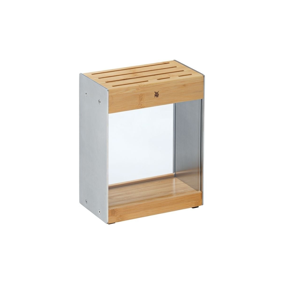 Elegancki blok na noże WMF to połączenie drewna i stali nierdzewnej w nowoczesnym designie. Dzięki przezroczystym elementom eksponuje ostrza, nadając kuchni profesjonalny charakter. Posiada miejsce na maksymalnie 9 noży, zapewniając bezpieczne i wygodne przechowywanie. Przeznaczony do czyszczenia ręcznego. Idealny dla osób ceniących estetykę i funkcjonalność.