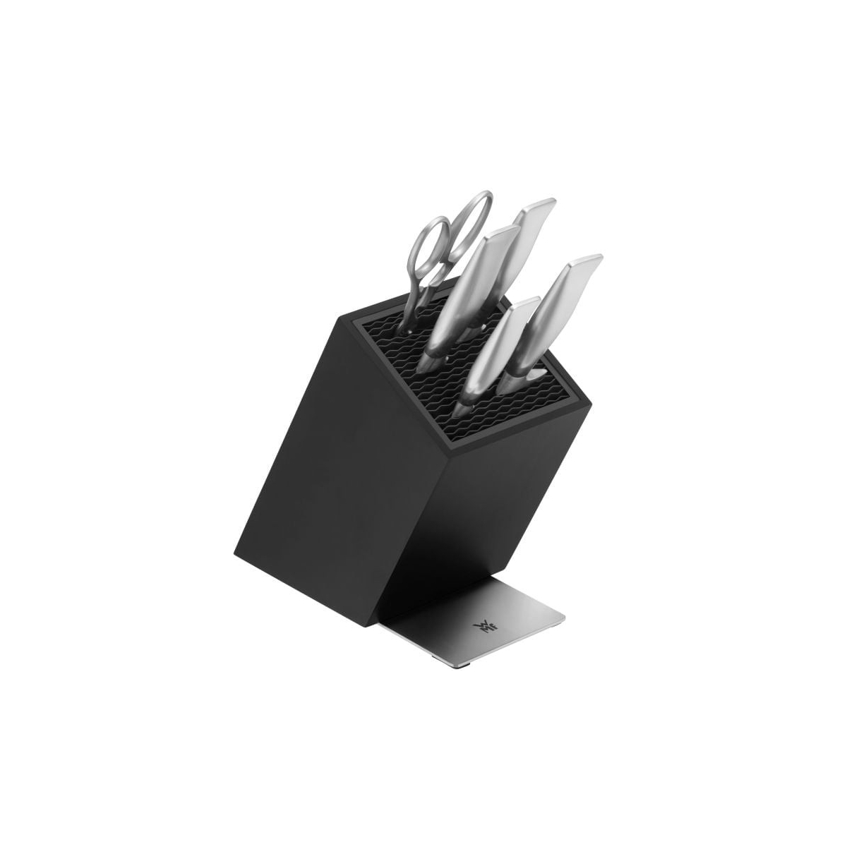 Zestaw noży Grand Gourmet WMF to doskonałe połączenie precyzji i wyrafinowanego designu. W komplecie znajdują się noże: szefa kuchni, do mięsa, do pieczywa, do owoców oraz nożyczki. Ich ręcznie kute ostrza, wykonane w technologii WMF Performance Cut, gwarantują wyjątkową ostrość i trwałość.