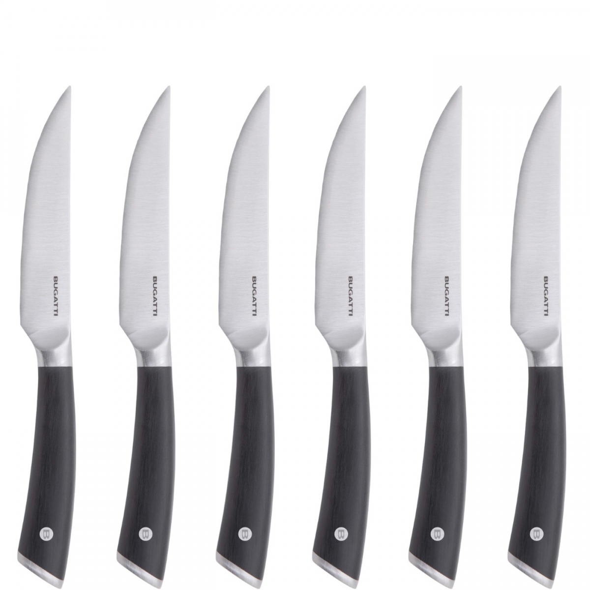 Zestaw 6 noży do steków Auberge marki Casa Bugatti to połączenie elegancji, precyzji i włoskiego designu. Wykonane ze stali nierdzewnej, zachwycają trwałością, idealnym wyważeniem i połyskiem.