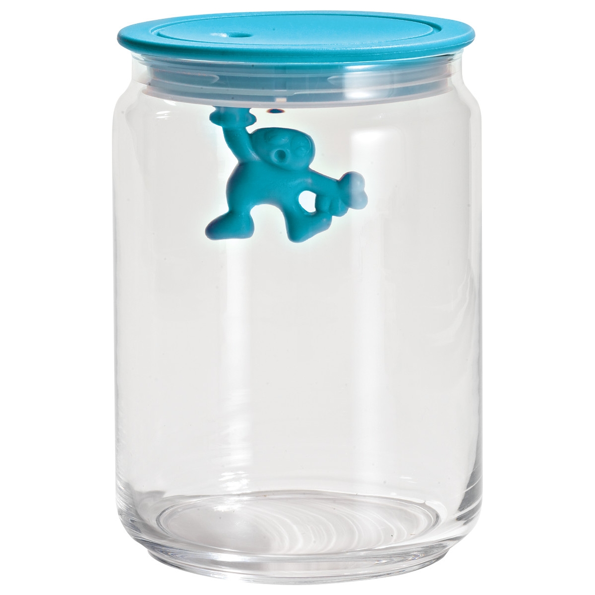 Pojemnik kuchenny Gianni mały człowiek trzymający się mocno zaprojektowany przez Mattii Di Rosa i stworzony przez Alessi. Szklany słoik z hermetyczną pokrywką z żywicy termoplastycznej w kolorze niebieskim. Oryginalna interpretacja klasycznego słoja kuchennego, w którym Gianni znajduje się wewnątrz słoika.