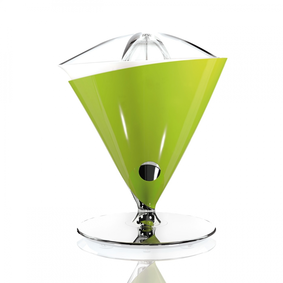 Vita firmy Bugatti w kolorze zielonym to ekskluzywna, elektryczna wyciskarka do soków o asymetrycznym wyglądzie. Prosta w użyciu i bardzo stylowa. Posiada dwa różne stożki do wyciskania soków do małych i dużych owoców.