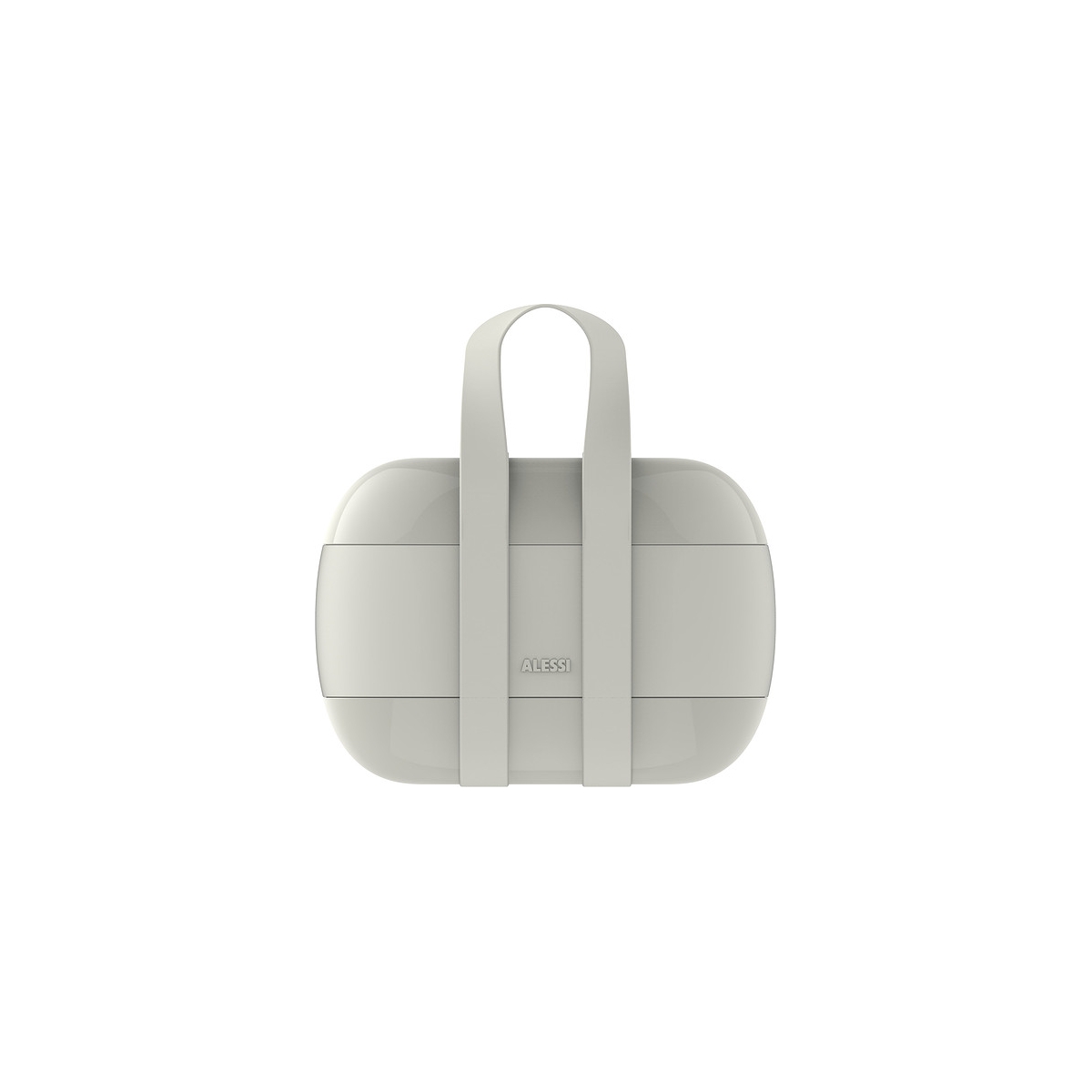 Przestronne pudełko na lunch Food à porter od Alessi, kompaktowe i wszechstronne, podzielone na trzy pojemniki z możliwością wyboru dwóch pokrywek, w zależności od wyboru obiadu. Do spożywania lunchu w dowolnym miejscu, w pracy lub na świeżym powietrzu. Idealny dla tych, którzy chcą cieszyć się jedzeniem przygotowywanym w domu lub tych, którzy przestrzegają określonej diety.