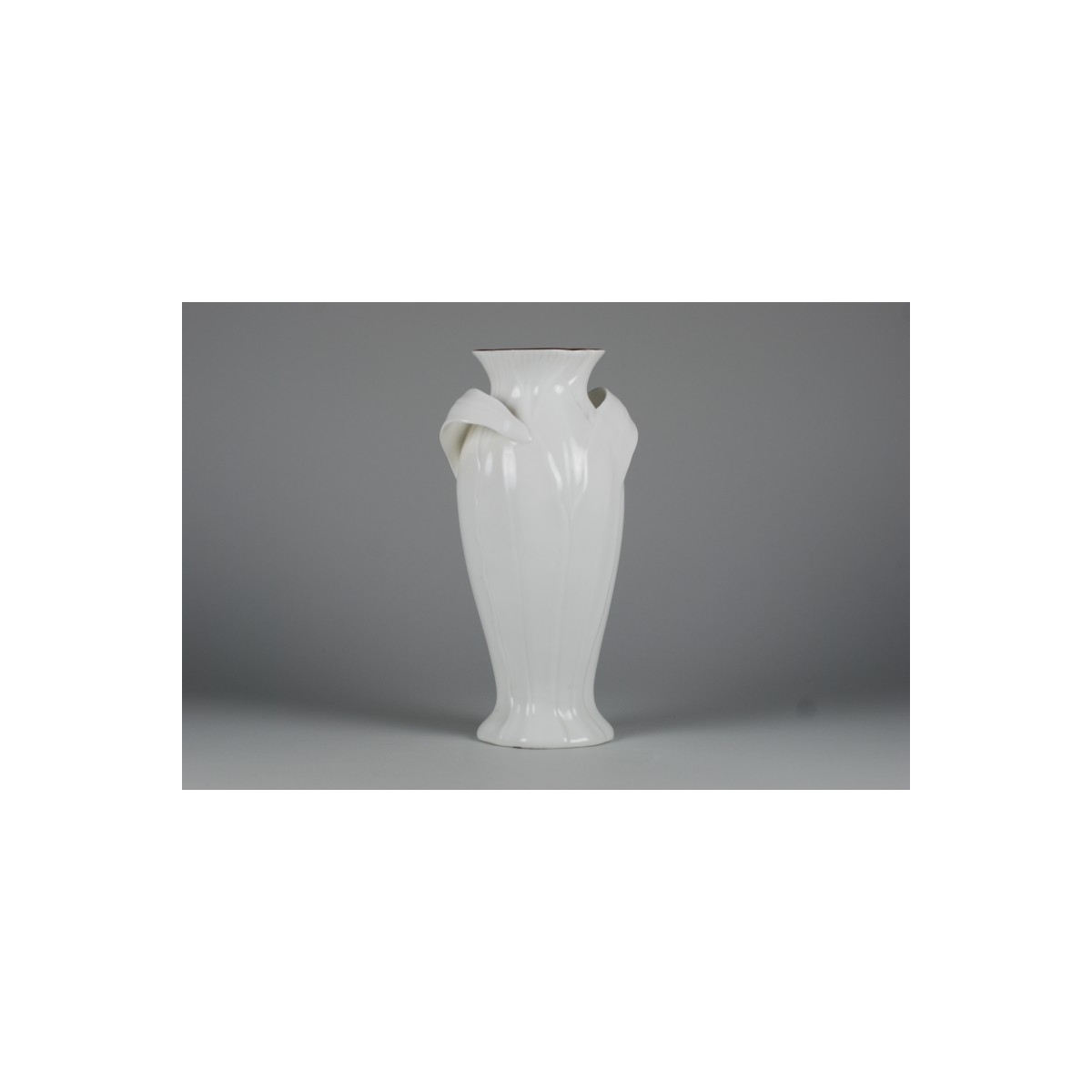 Porcelanowy wazon Bukietnik - Liść nr 1 ze złotą lub platynową dekoracją od AS Ćmielów. Wzór z roku ok. 1900.