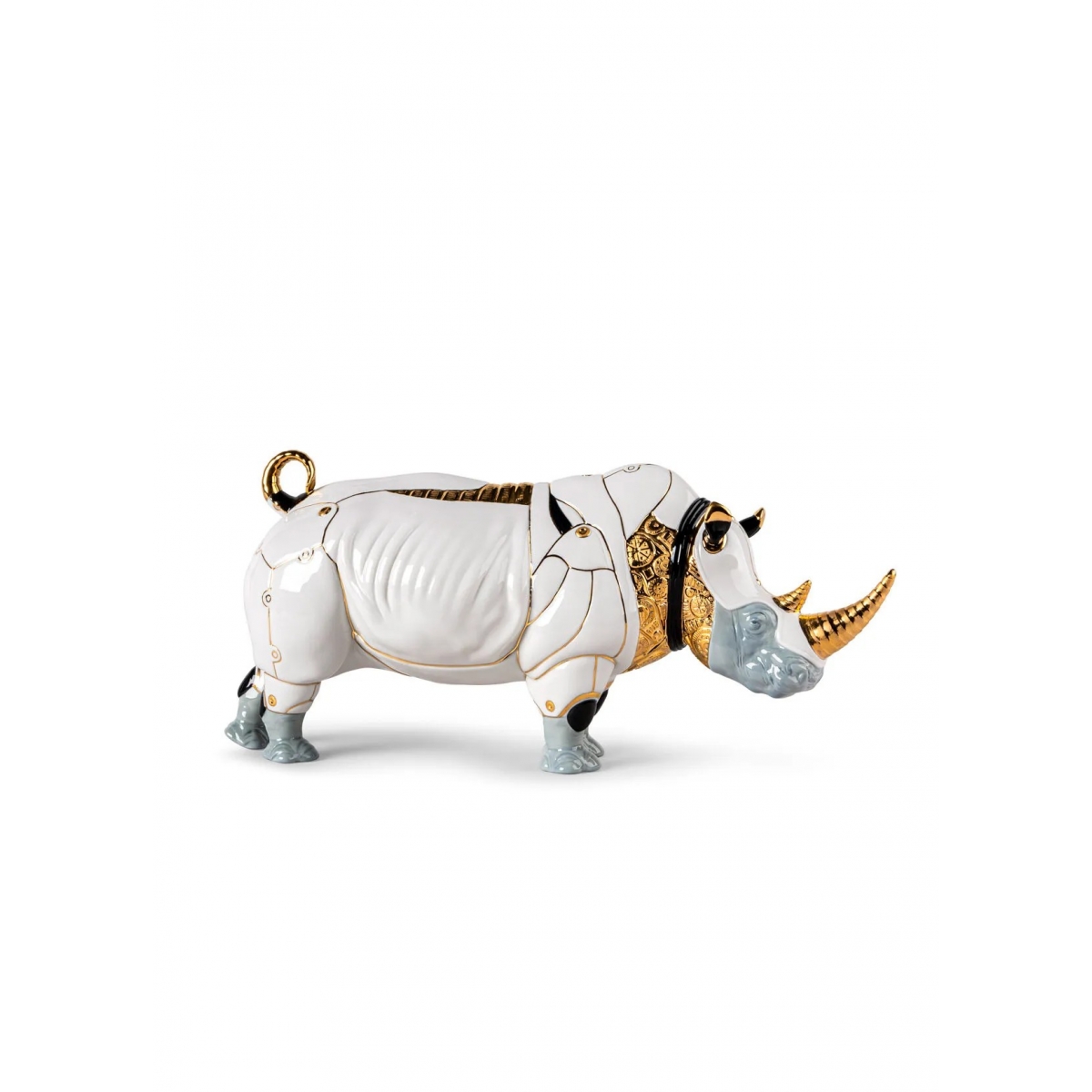 Figurka Rhino Cyborg Nosorożec od Lladro. Rzeźba nosorożca o wyglądzie robota, wykonana ręcznie z porcelany.