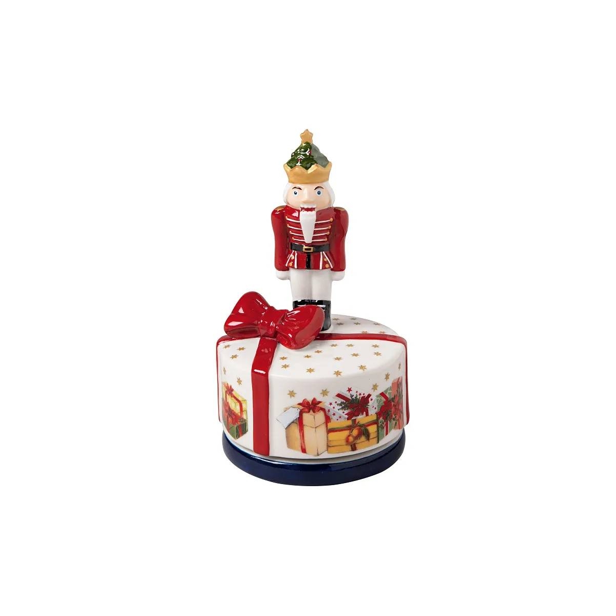 Pozytywka Dziadek do orzechów z kolekcji Nostalgic Melody od Villeroy & Boch roztacza atmosferę świąt, tworząc magiczną świąteczną krainę z jarmarkami bożonarodzeniowymi, bałwankami i św. Mikołajem. Ozdoba ma ręcznie malowane elementy, pozytywka rozbrzmiewa dźwiękami klasycznej melodii „Blumenwalzer”/„Walc kwiatów”. Niech Boże Narodzenie rozbrzmiewa świątecznymi dźwiękami.