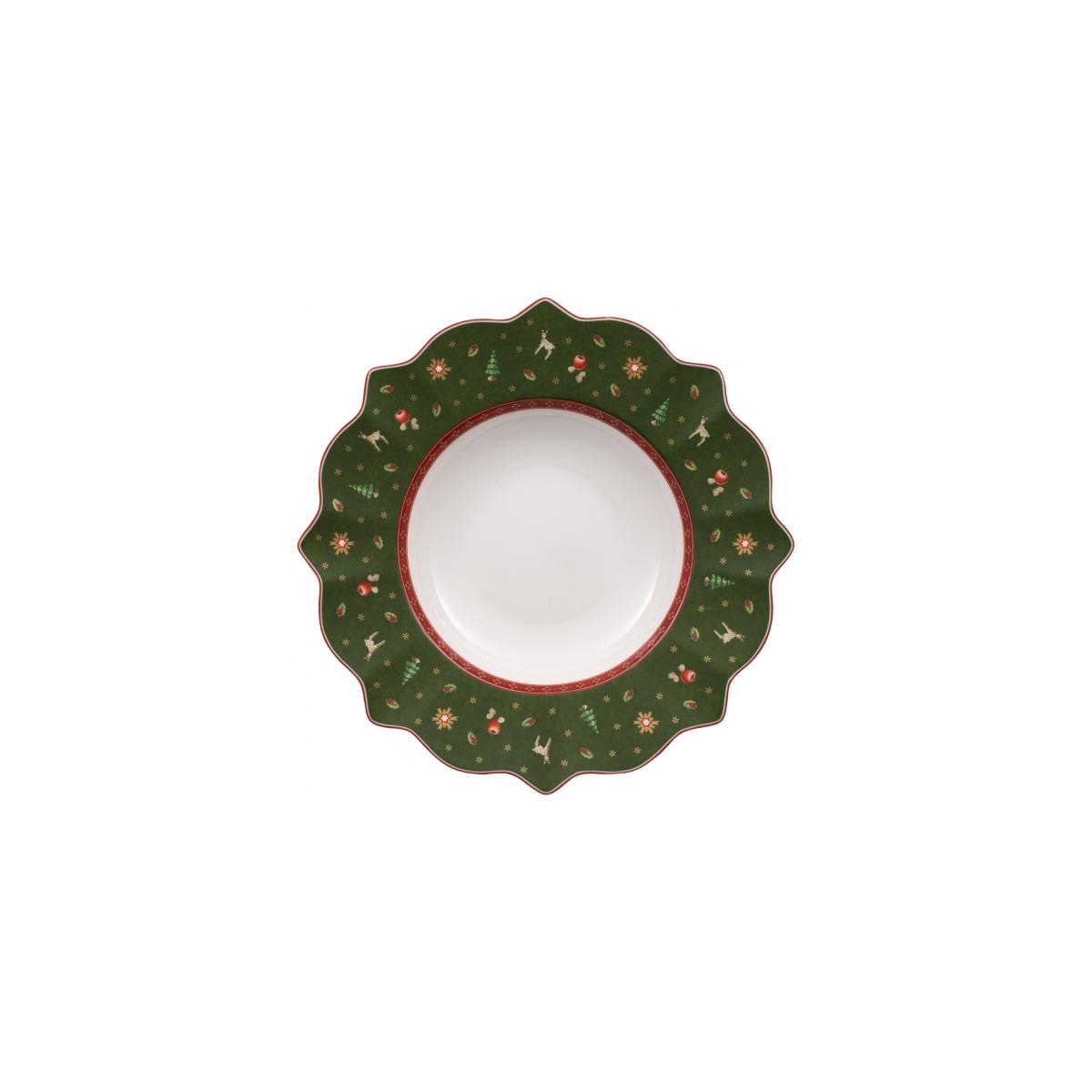 Elegancki zielony talerz przeznaczony do smacznego bulionu, zup i gęstych potraw z kolekcji Toy's Delight od Villeroy & Boch będzie ozdobą świątecznego stołu, stworzy nostalgiczny, świąteczny nastrój w Twoim domu. Naczynia są zdobione fantazyjnymi motywami w czerwonym, zielonym i białym kolorze i budzą wspomnienia z dzieciństwa. Do łączenia, kolekcjonowania i obdarowywania. Poczuj magię świąt Bożego Narodzenia.