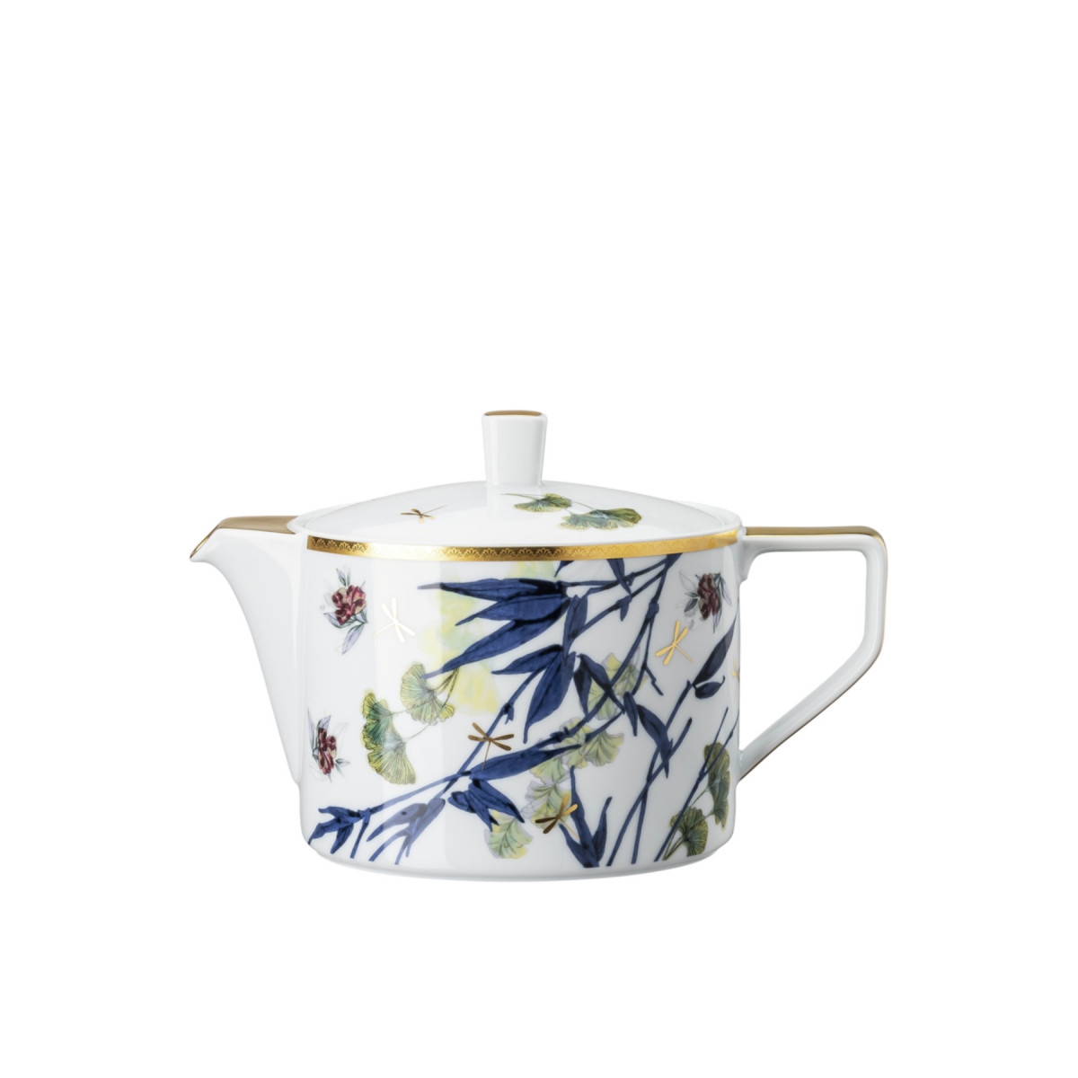 Dzbanek do herbaty „Turandot” z kolekcji Rosenthal Heritage, zaprojektowany przez Gianniego Cinti, to wyjątkowy element serwisu, który łączy europejską formę z dalekowschodnim ornamentem. Inspirowany chińskim pejzażem z Jeziora Zachodniego w Hangzhou, dzbanek ozdobiony jest malarskimi motywami piwonii, bambusa, miłorzębu oraz ważek, wzbogaconymi o subtelne złocenia.