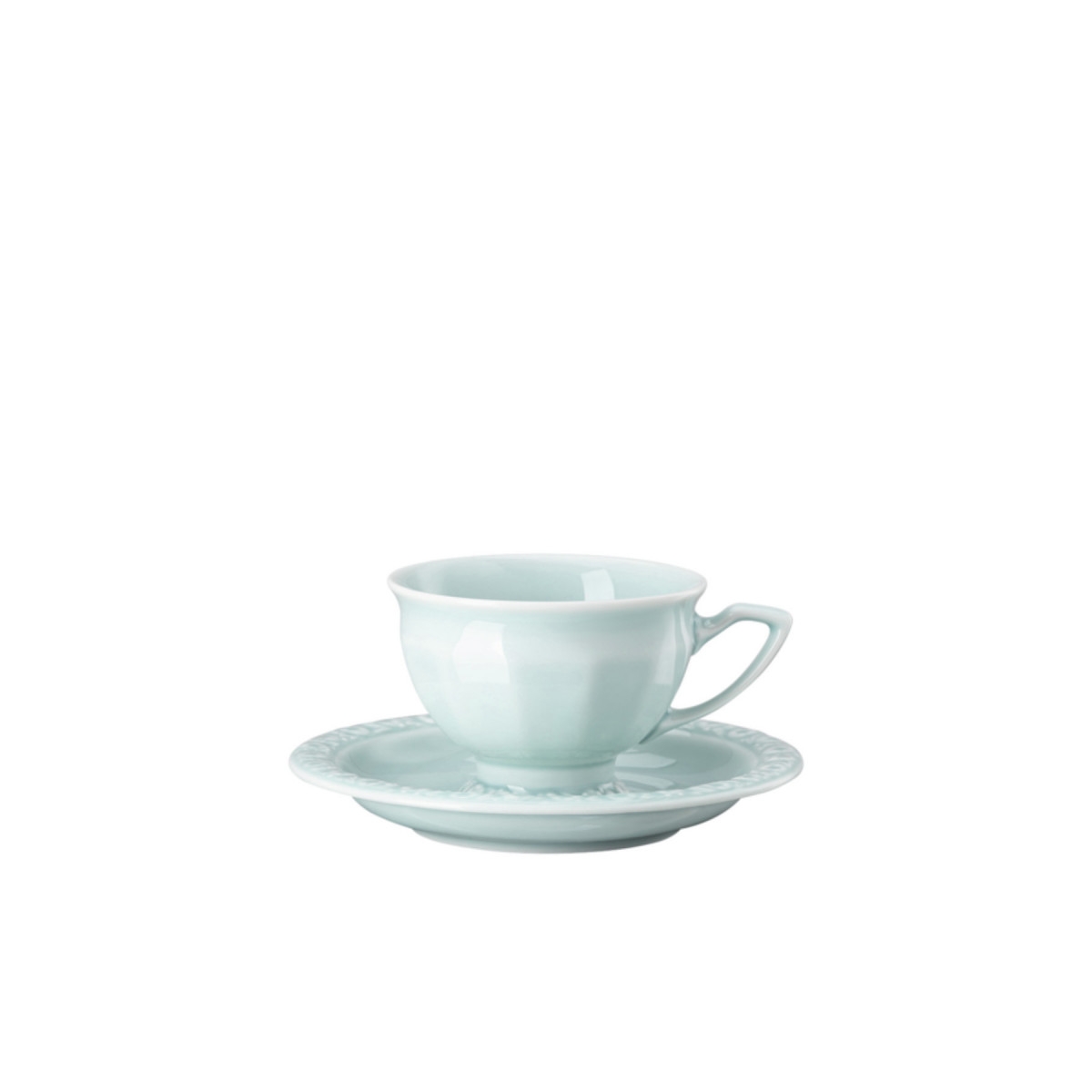 Filiżanka do kawy Maria Mint od Rosenthal. Klasyczna kolekcja Maria marki Rosenthal z charakterystycznym kwiatowym reliefem w pięknym zielonym kolorze zyskuje całkiem nowy wygląd. To wyjątkowa odsłona kolekcji, po raz pierwszy w swojej długiej historii, Maria jest dostępna w nowoczesnej wersji, dzięki zastosowaniu kolorowych szkliw. Wybrane elementy kolekcji pokryto delikatnymi pastelowymi odcieniami, które podkreślają romantyczny charakter zestawu. Ta bogato zdobiona kolekcja zachwycała przez dziesiątki lat, a jej elegancki wzór dodaje uroku każdemu posiłkowi i spotkaniu przy stole.