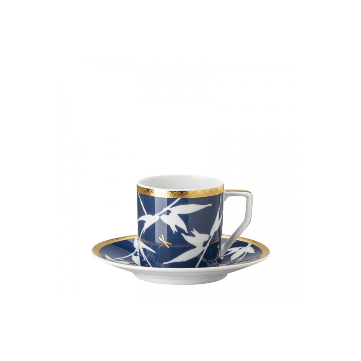 Filiżanka do espresso ze spodkiem „Turandot” z kolekcji Rosenthal Heritage to porcelanowe arcydzieło inspirowane kulturą Dalekiego Wschodu. Projekt stworzony przez Gianniego Cinti zachwyca detalami – misternie zdobiona powierzchnia przedstawia motywy piwonii, bambusa, miłorzębu i delikatnych ważek, a całość dopełniają subtelne złocenia.