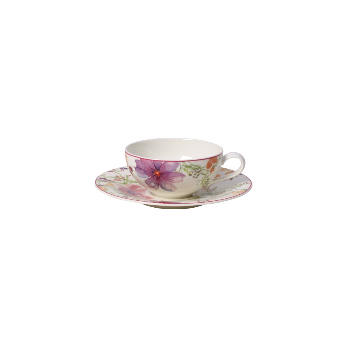 Filiżanka do herbaty 0,24 l ze spodkiem 16 cm jest częścią kolekcji Mariefleur Tea nowoczesnej zastawy stołowej Villeroy & Boch. Świeże, odważne kolory kolekcji Mariefleur Tea zamieniają stół w kolorowe morze kwiatów. Elegancko wygięte kształty porcelany sprawią, że przygotowanie herbaty będzie jeszcze przyjemniejsze dla miłośników ekskluzywnych herbat.