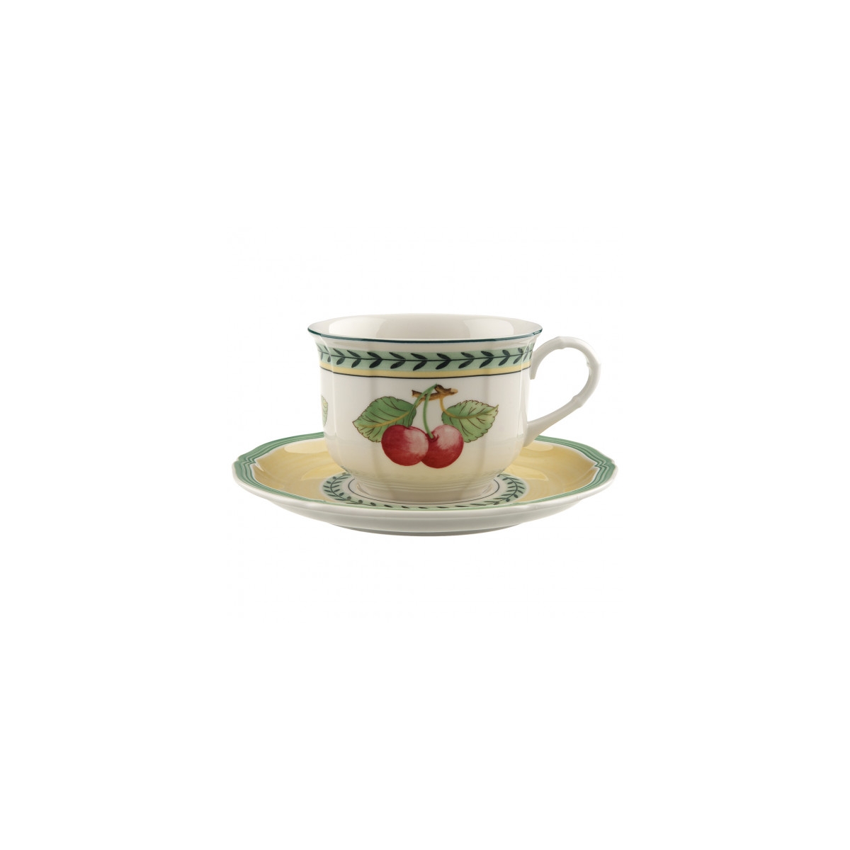 Zestaw do dużej porannej kawy, filiżanka o pojemności 0,35 l ze spodkiem o średnicy 17 cm. Kolekcja French Garden Fleurence to owocowa zastawa stołowa Villeroy & Boch. French Garden tworzy wspaniały sad na stole z tradycyjnymi elementami rustykalnymi w ciepłych kolorach. Ponadczasowe piękno pozwala mieszać i dopasowywać różne letnie dekory.
