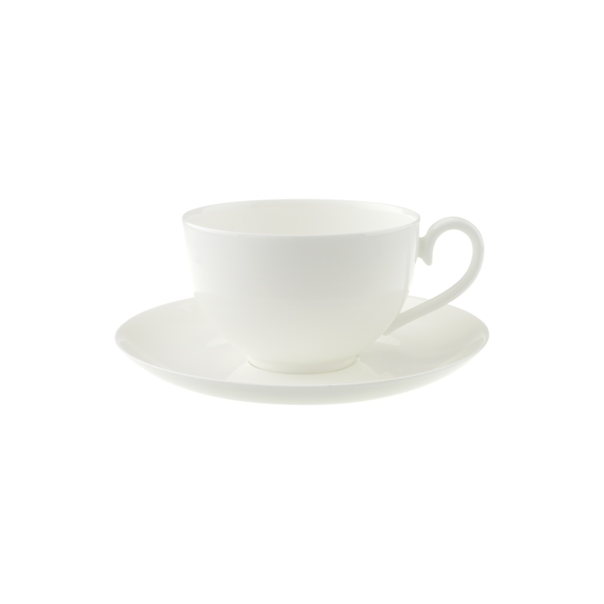 Filiżanka do białej kawy o pojemności 0,4 l ze spodkiem o średnicy 18 cm z kolekcji Royal marki Villeroy & Boch. Dyskretnie i elegancko do wykorzystania na wiele możliwości, kolekcja wykonana z porcelany kostnej. Seria Royal to uniwersalne, klasyczne kształty które doskonale prezentują się na każdym stole i dodają elegancji w każdym wnętrzu.
