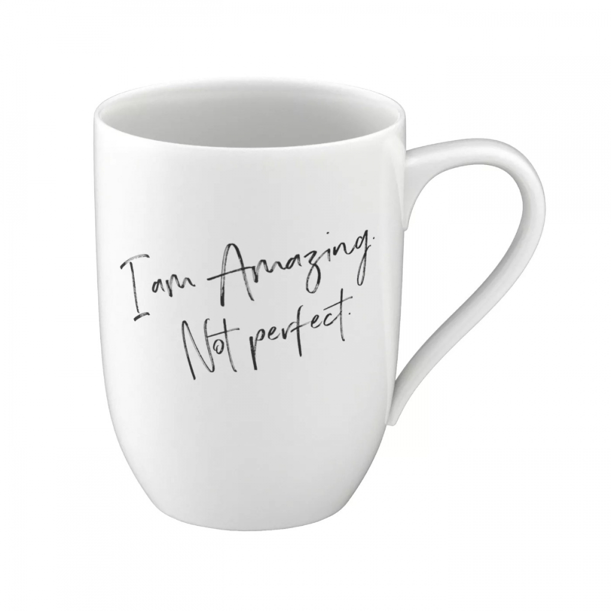 Kubek do kawy z wyjątkową wiadomością z kolekcji Statement od Villeroy & Boch. Przerwa na kawę? nie musisz nic mówić... kubek przekaże odpowiedni komunikat. Kubek z napisem „I'm amazing. Not perfect”.
