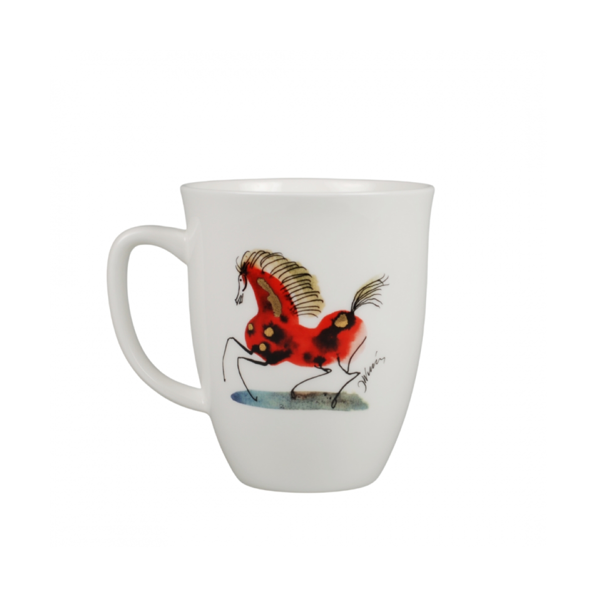 Porcelanowy kubek Ars z autorskiej kolekcji Józefa Wilkonia. Kubek W galopie wykonany z najwyższej jakości porcelany AS Ćmielów.