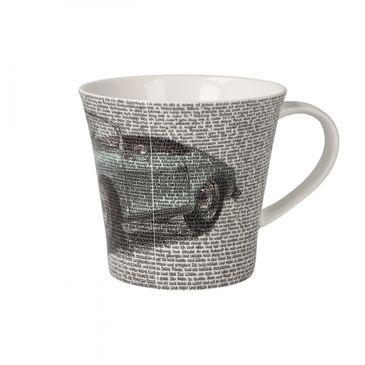 Ten unikalny kubek to coś więcej niż naczynie – to poetycka podróż przez emocje, dźwięki i historię. Łączy w sobie słowa kultowej piosenki "Mercedes Benz" Janis Joplin, poetyckie wersy "Atemlos" (Do utraty tchu) i "Stroh & Feuer" (Słoma i ogień) autorstwa Saxy, tworząc wyjątkowy hołd dla klasycznego Porsche 356.