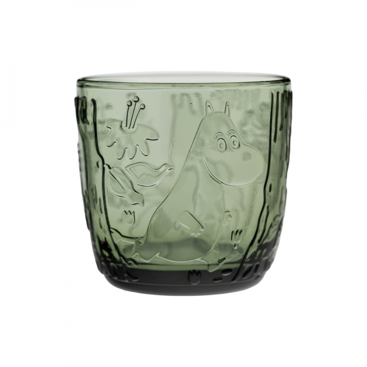 Szklanki z kolekcji Arabia Finland Muminki. Delikatnie wytłaczane szkło ozdobione jest teksturami przywodzącymi na myśl tajemniczy las, w którym Muminki bawią się w chowanego. Idealne do codziennego użytku i na wyjątkowe okazje, dodają stołowi uroku i baśniowego klimatu.