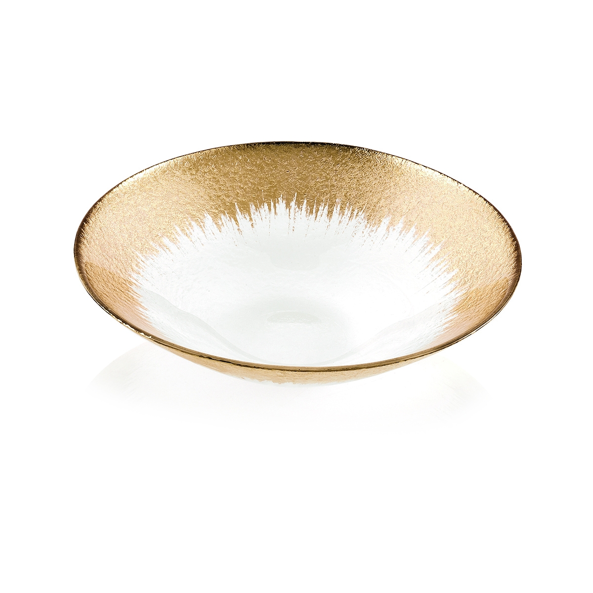 Prasowane szkło z subtelnym złotym paskiem na krawędzi. Proste, a jednocześnie eleganckie wzornictwo, które podkreśli charakter codziennego i odświętnego stołu. Idealna do serwowania przekąsek, sałatek czy deserów.