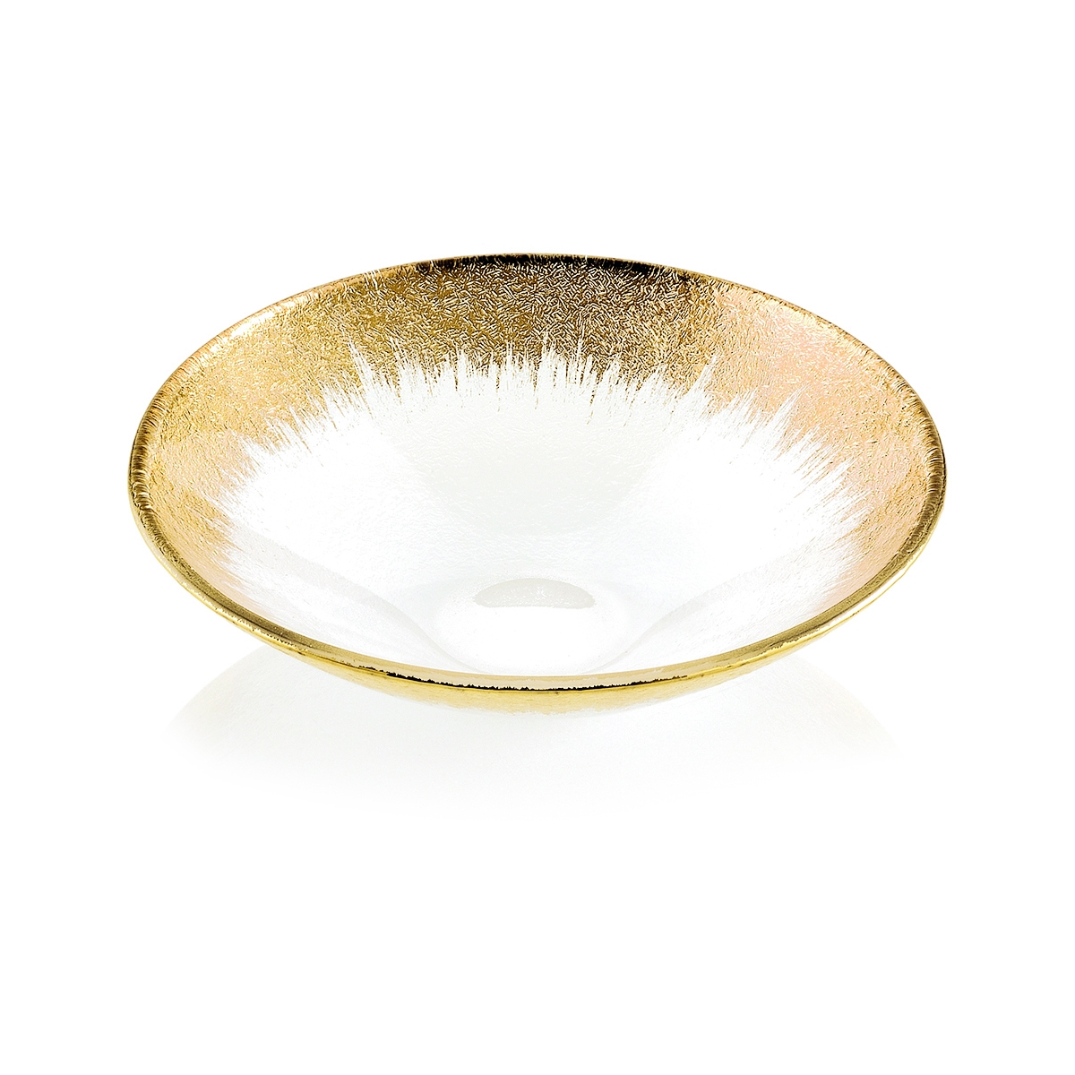 Prasowane szkło z subtelnym złotym paskiem na krawędzi. Proste, a jednocześnie eleganckie wzornictwo, które podkreśli charakter codziennego i odświętnego stołu. Idealna do serwowania przekąsek, sałatek czy deserów.