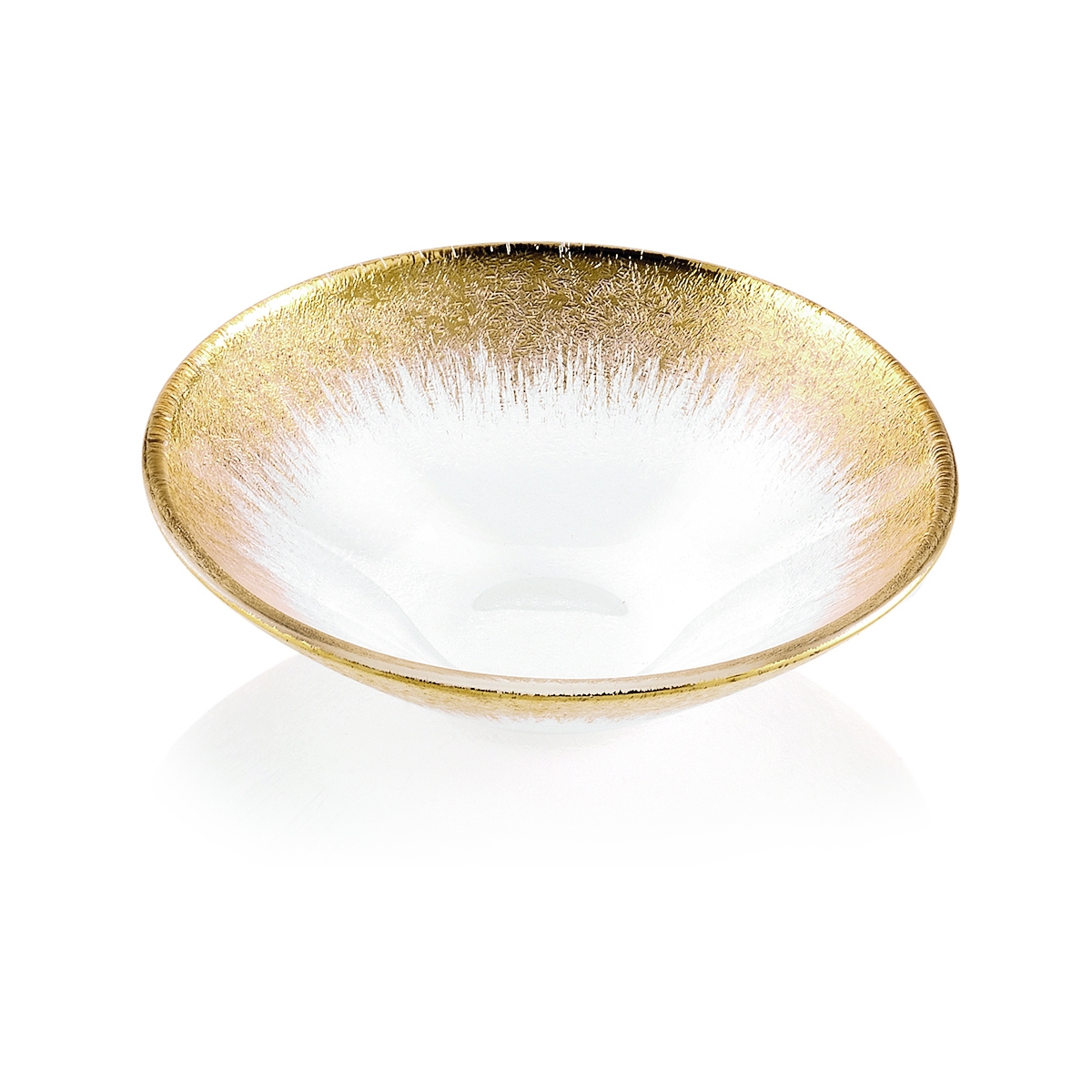 Prasowane szkło z subtelnym złotym paskiem na krawędzi. Proste, a jednocześnie eleganckie wzornictwo, które podkreśli charakter codziennego i odświętnego stołu. Idealna do serwowania przekąsek, sałatek czy deserów.