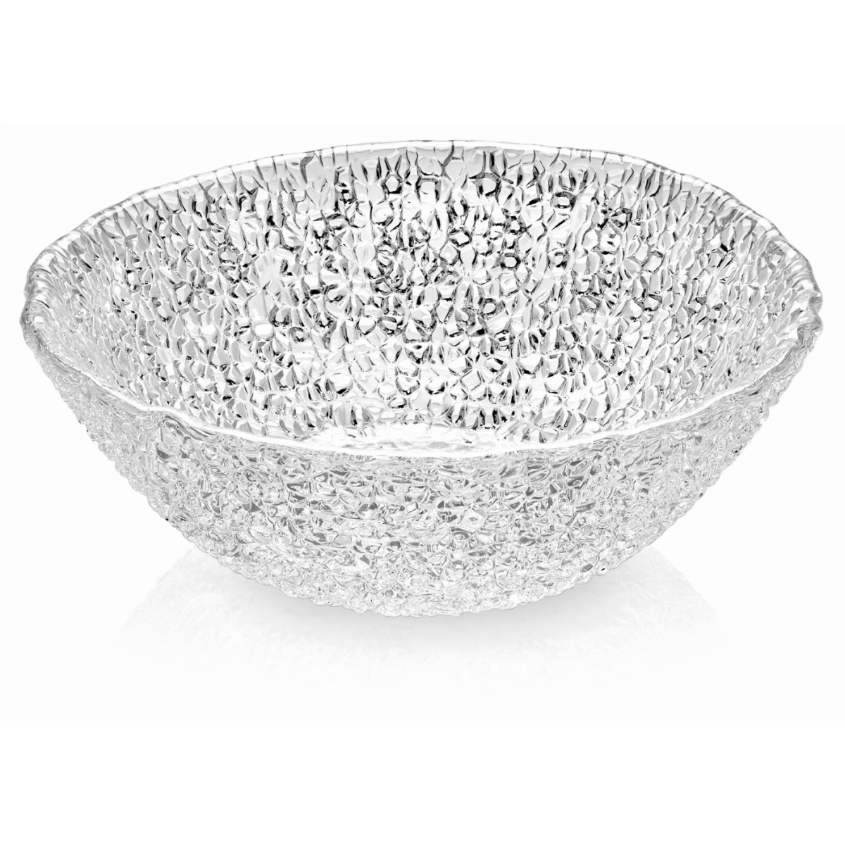 Misa z kolekcji Special, wykonana z przezroczystego, prasowanego szkła, wyróżniająca się zewnętrzną powierzchnią z dekoracyjnym, nieregularnym wzorem. Struktura ta pięknie odbija światło i nadaje naczyniu subtelny, elegancki charakter. Doskonała do serwowania sałatek, owoców lub jako dekoracyjny element stołu.