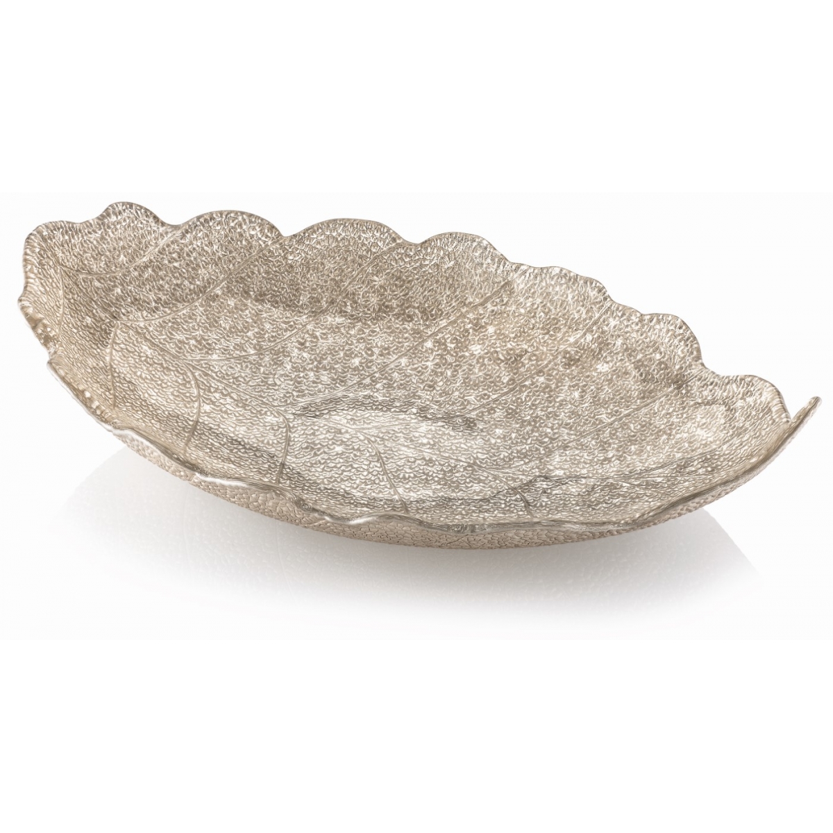 Efektowna misa z kolekcji Madagascar, wykonana z przezroczystego, prasowanego szkła, którego zewnętrzna struktura imituje kształt liścia. Dzięki dużej średnicy 57 cm doskonale sprawdzi się jako centralny element stołu – idealna do serwowania sałatek, owoców czy jako oryginalna dekoracja wnętrza. Subtelna gra światła na reliefowej powierzchni nadaje jej naturalnej lekkości i elegancji.