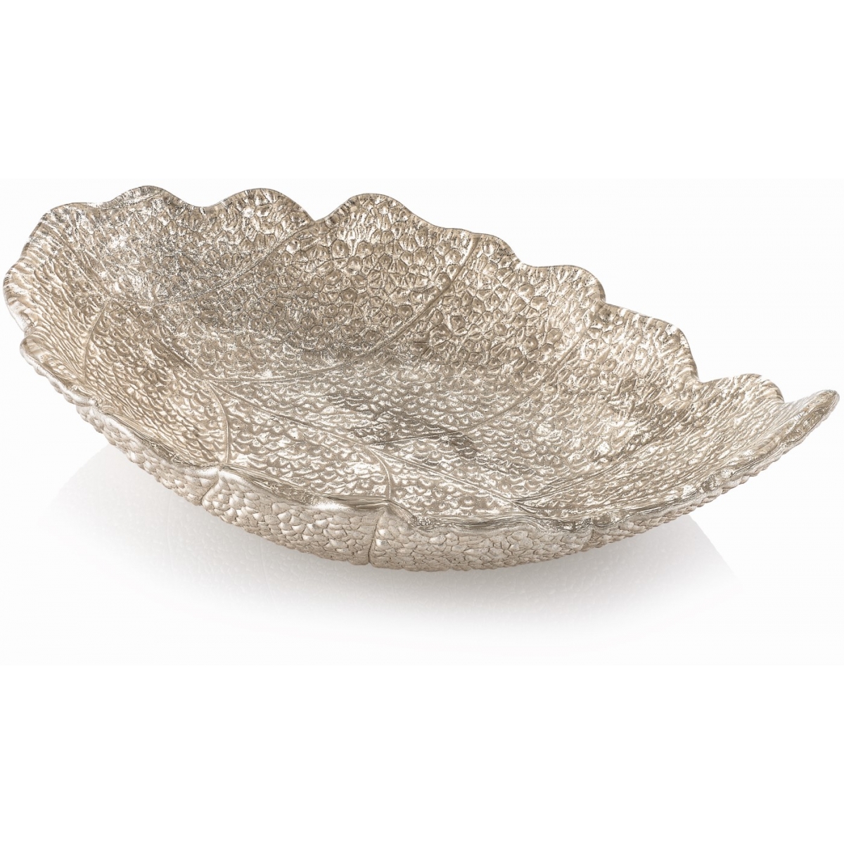 Efektowna misa z kolekcji Madagascar, wykonana z przezroczystego, prasowanego szkła, którego zewnętrzna struktura imituje kształt liścia. Dzięki dużej średnicy 57 cm doskonale sprawdzi się jako centralny element stołu – idealna do serwowania sałatek, owoców czy jako oryginalna dekoracja wnętrza. Subtelna gra światła na reliefowej powierzchni nadaje jej naturalnej lekkości i elegancji.