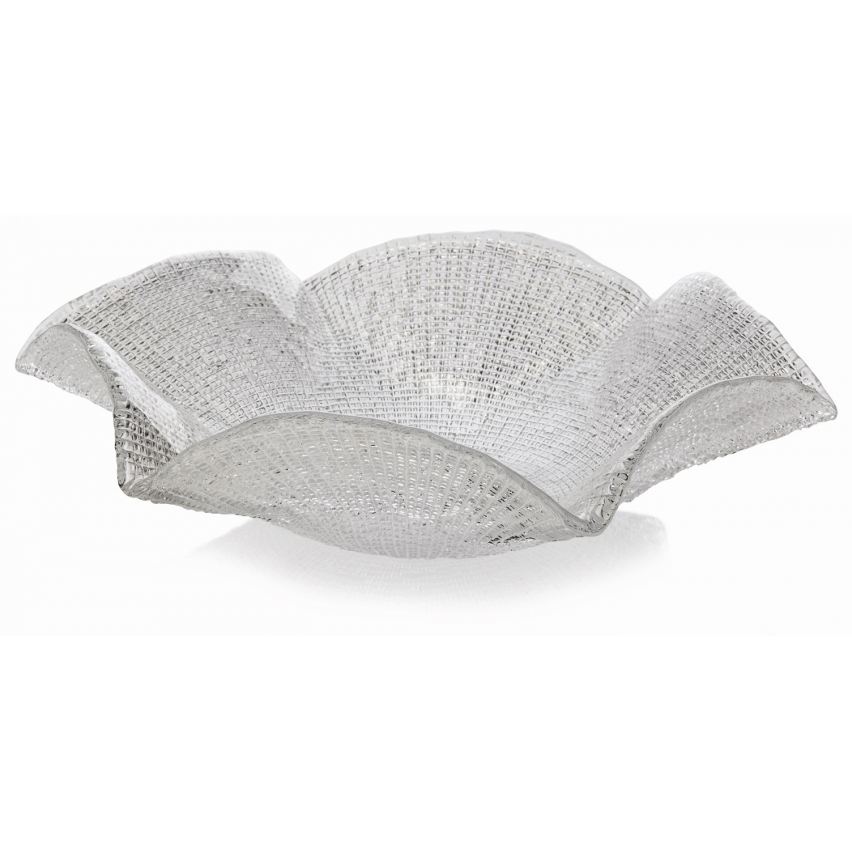 Misa z kolekcji Folies wykonana z przezroczystego szkła prasowanego. Jej zewnętrzna powierzchnia zdobiona jest nieregularnym wzorem, który tworzy efektowną grę światła i faktury – błyszczącą, a zarazem przyjemną w dotyku. Idealna zarówno do serwowania, jak i jako dekoracyjny akcent na stole lub komodzie.