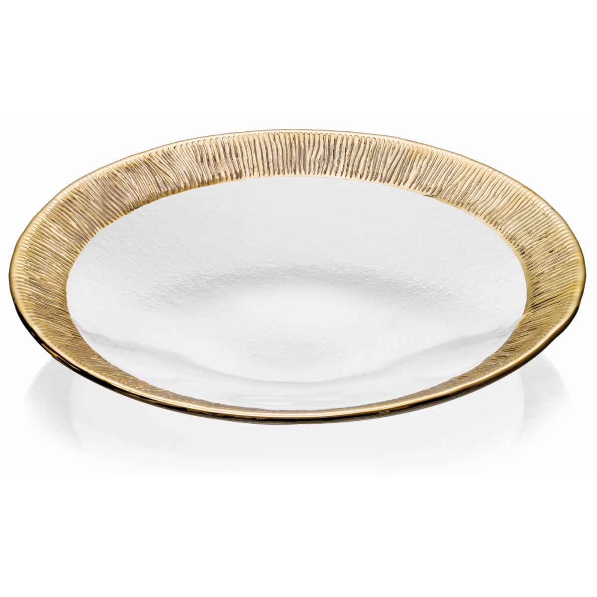 Duża misa z kolekcji Dinner in Jeddah wykonana jest z transparentnego, prasowanego szkła i wykończona eleganckim, złotym paskiem na zewnętrznej krawędzi. Jej minimalistyczna forma w połączeniu z dekoracyjnym detalem tworzy efektowny, a zarazem ponadczasowy design.