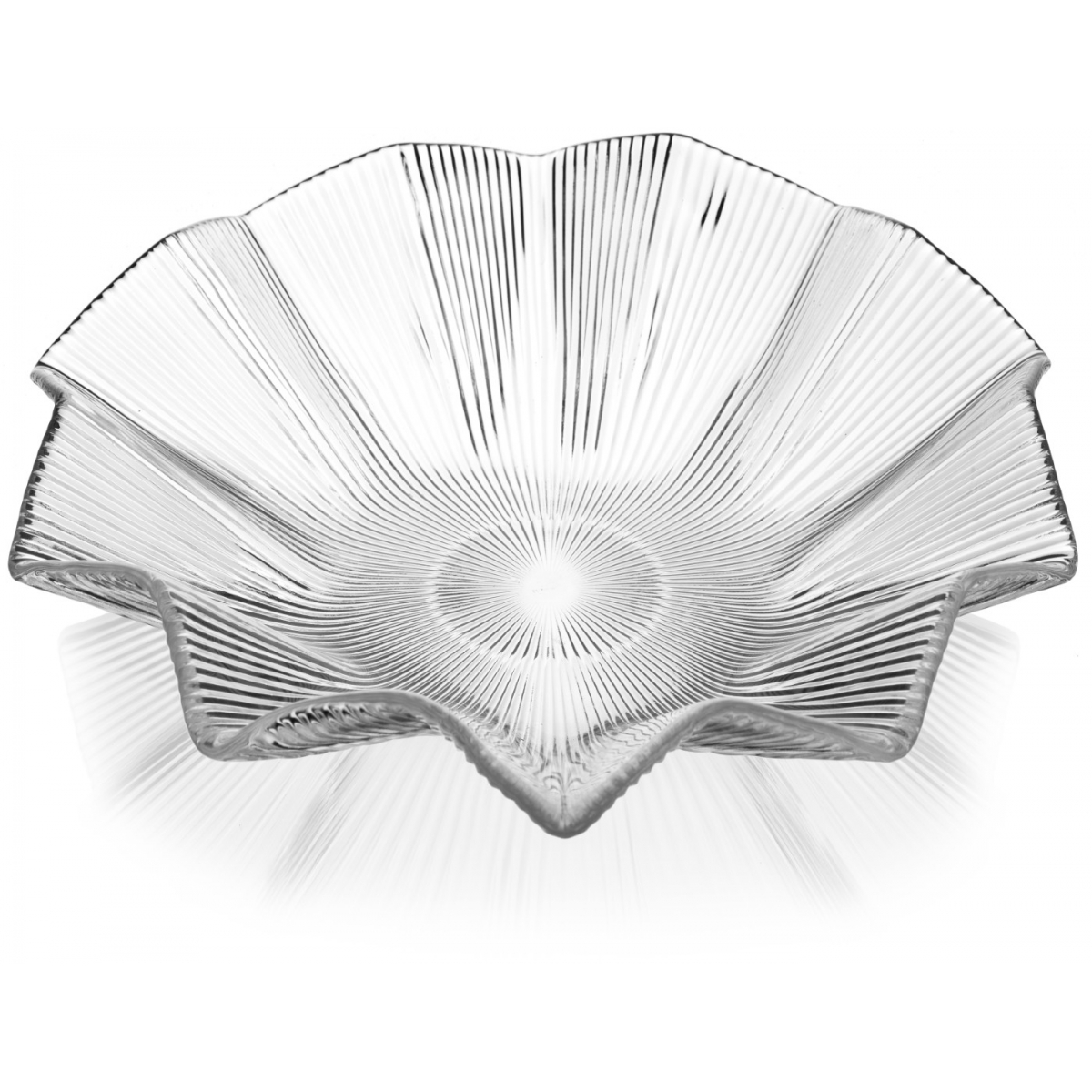 Misa dekoracyjna z kolekcji Ishtar wykonana jest z przezroczystego, prasowanego szkła. Jej design łączy prostotę z oryginalnością, a charakterystycznym elementem jest wzór canneté – regularne żłobienia prostopadłe do środka misy, które nadają powierzchni efekt głębi i elegancji.