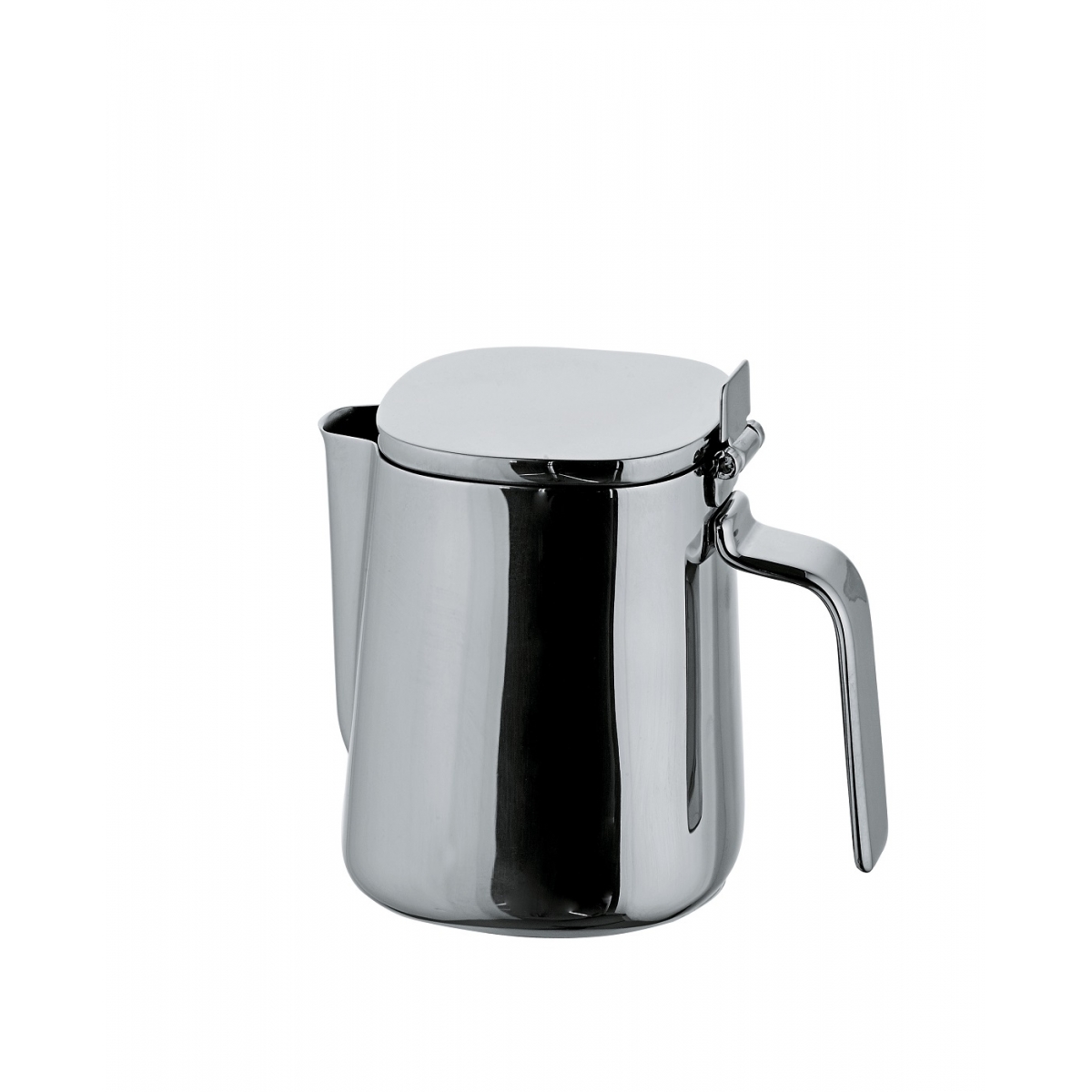Mlecznik z pokrywką od Alessi polerowany na wysoki połysk, elegancko prezentuje się na każdym stoliku kawowym.