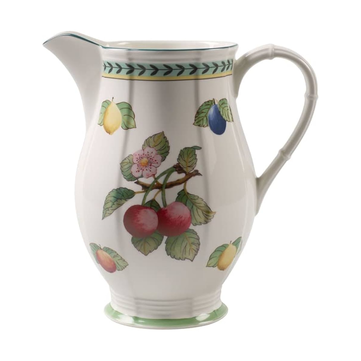 Dzbanek porcelanowy do soku, mleka, kompotu czy wody, do zimnych i gorących napojów. Kolekcja French Garden Fleurence to owocowa zastawa stołowa Villeroy & Boch. French Garden tworzy wspaniały sad na stole z tradycyjnymi elementami rustykalnymi w ciepłych kolorach. Ponadczasowe piękno pozwala mieszać i dopasowywać różne letnie dekory.