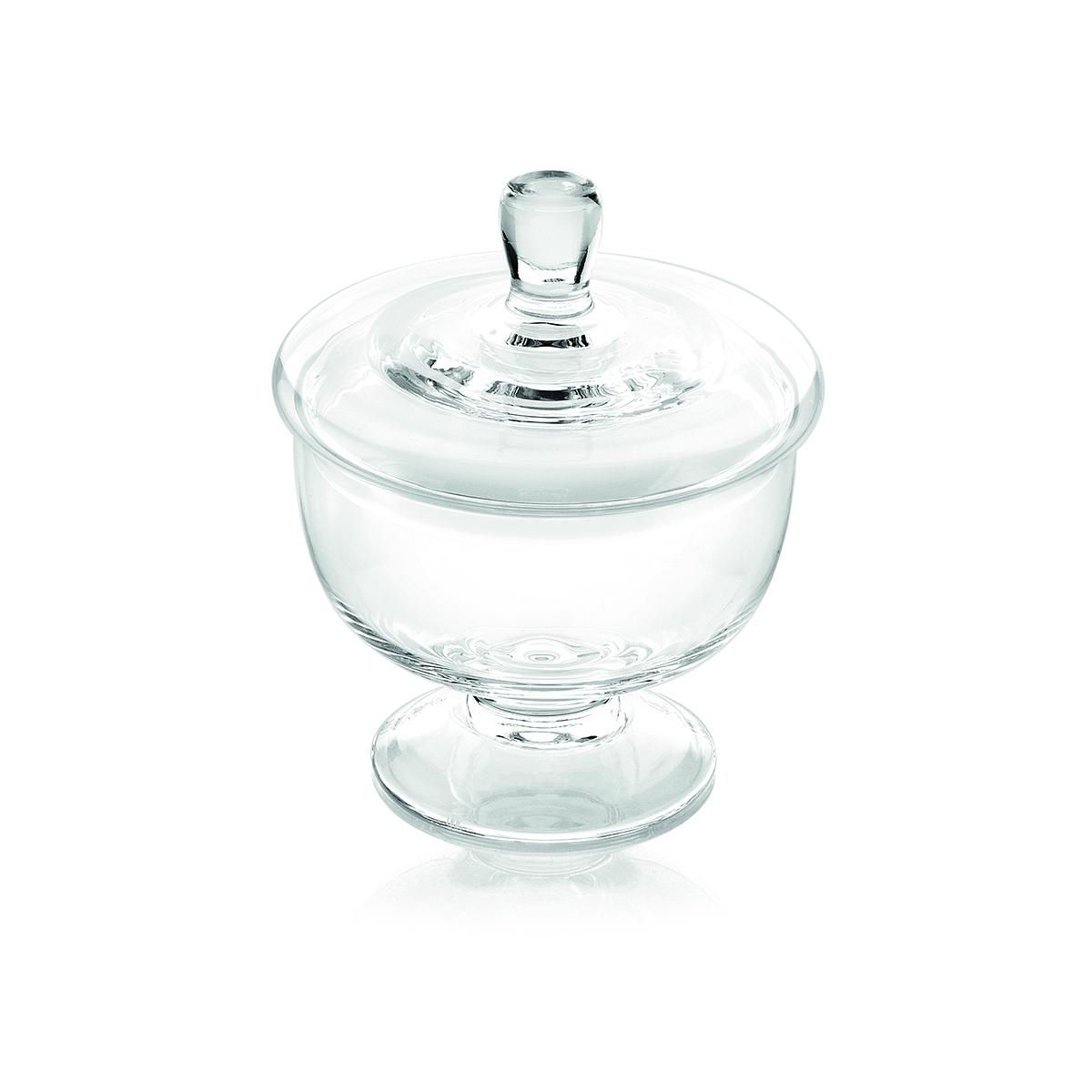 Bombonierka z kolekcji Toscana wykonany z przezroczystego, dmuchanego szkła to eleganckie połączenie funkcjonalności i estetyki. Dzięki klasycznej formie i dopracowanym detalom, doskonale sprawdzi się jako praktyczny pojemnik do przechowywania w kuchni, ale również jako element dekoracyjny w salonie, łazience czy spiżarni. Wyposażony w pokrywkę, chroni zawartość, a jego uniwersalny wygląd wpasuje się zarówno w nowoczesne, jak i tradycyjne wnętrza.