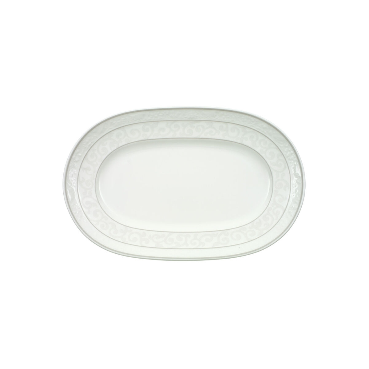 Podstawka do sosjerki lub talerz na pikle i smaczne dodatki z kolekcji Gray Pearl marki Villeroy & Boch. Klasyczna i subtelna a przy tym elegancka kolekcja Gray Pearl urzeka delikatnością szarych zdobień w kształcie roślin oraz delikatnym wypukłym wzorem, które podkreślają jej ekskluzywność.