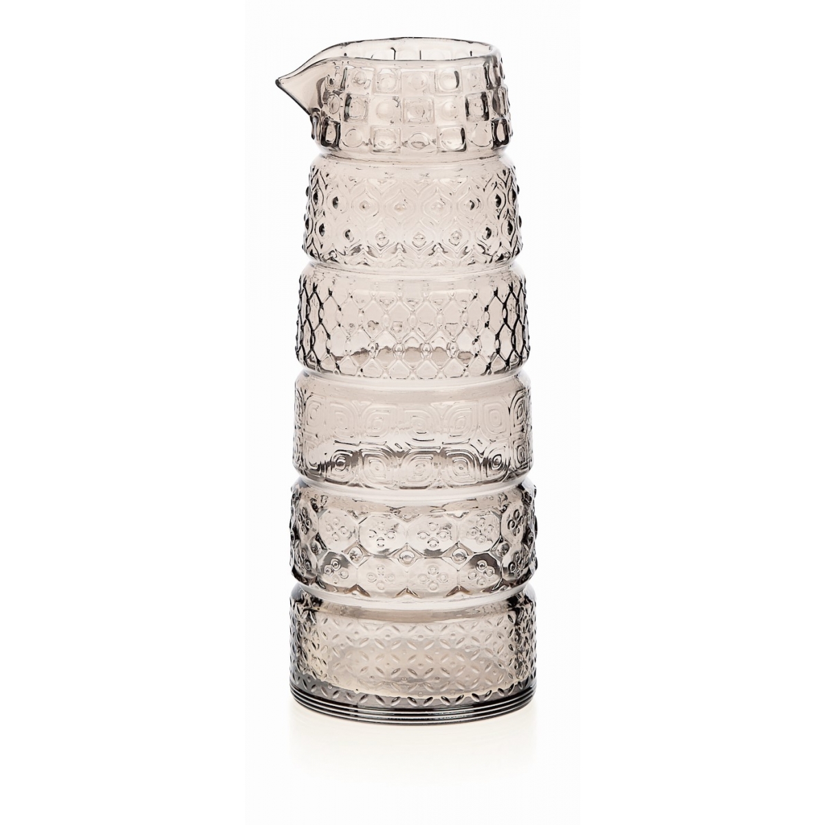 Przezroczysty dzbanek z dmuchanego szkła, inspirowany sześcioma różnymi kształtami szklanek, ułożonymi jakby jedna na drugiej. Oryginalny design i uniwersalna forma sprawiają, że doskonale sprawdzi się do serwowania wszystkich rodzajów napojów – od wody po koktajle.